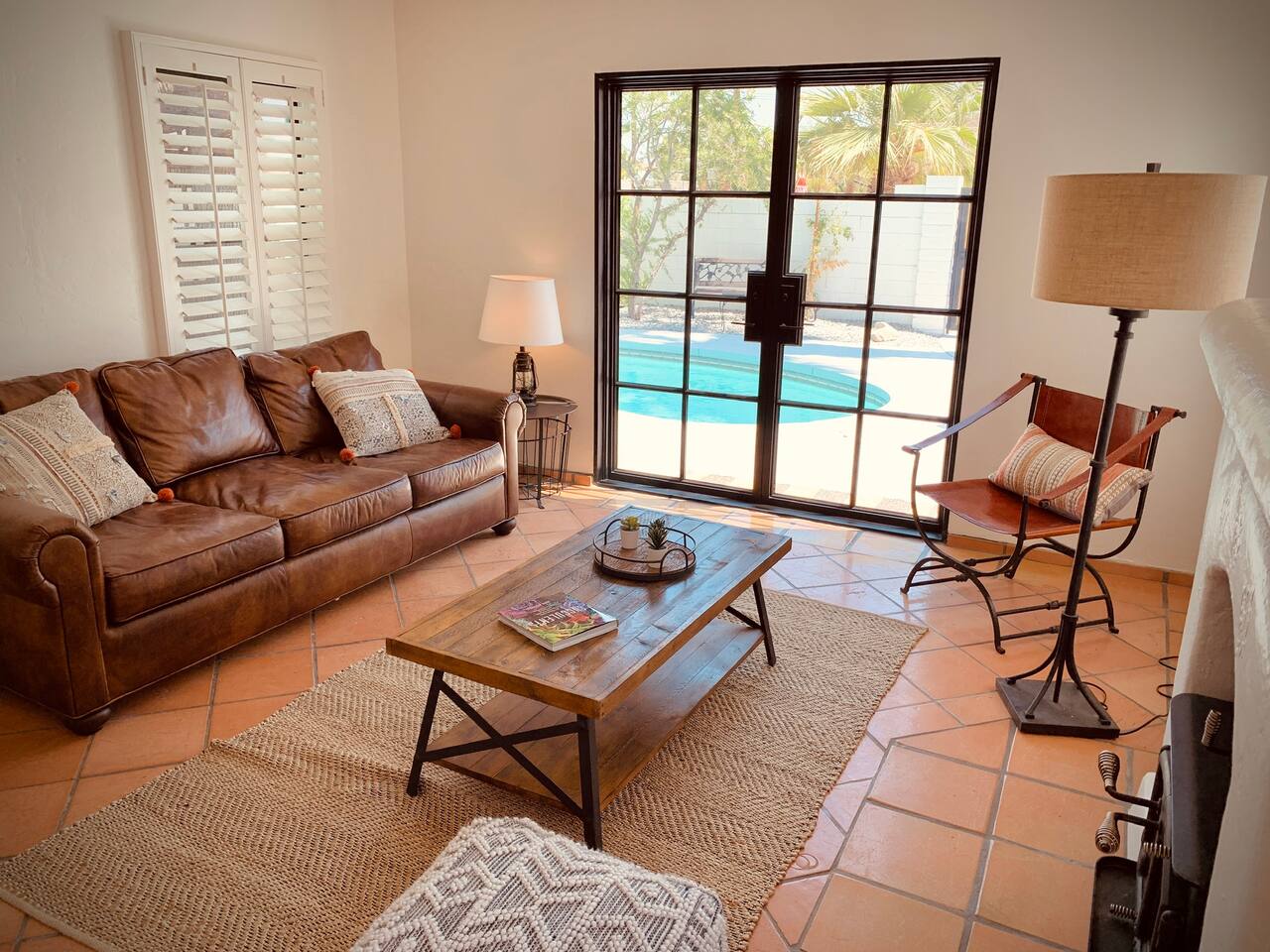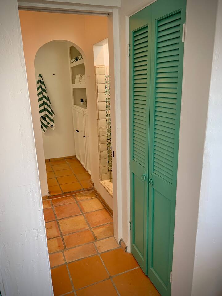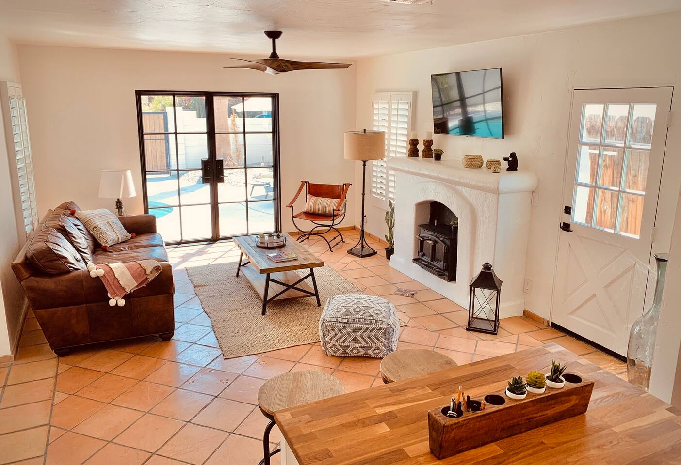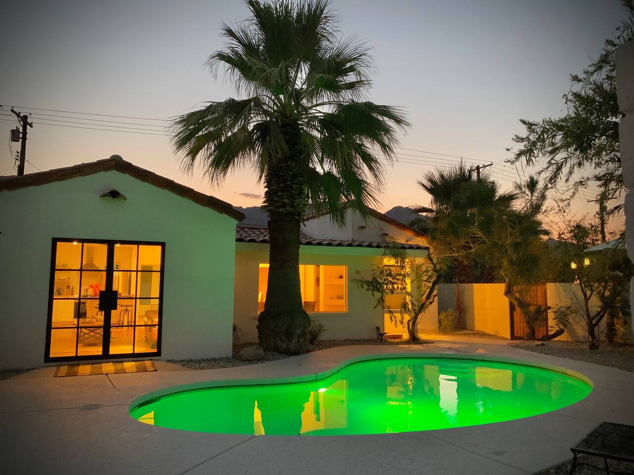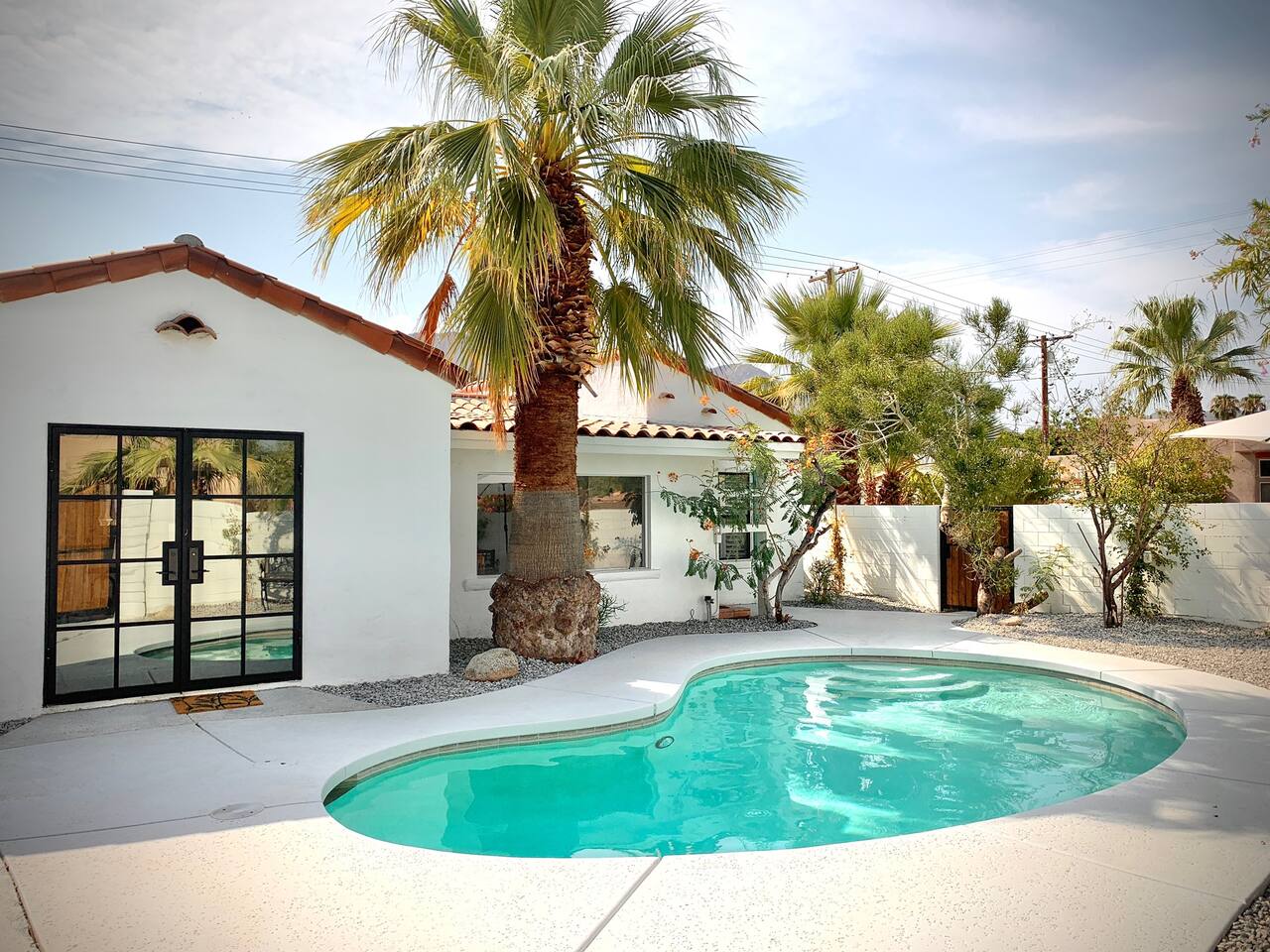 Encounter this authentic Spanish "Casita de Oliva" imagined in 1939 as one of the 63 unique Spanish Colonial casitas in the astonishing La Quinta Cove. We remodeled 2020 with utmost respect and consideration, celebrating the authentic charm and giving it a refreshed, expansive feel. Accumulated Furniture and decor thoughtfully, selecting rustic with a modern impression. Custom made Iron French doors escort you to the kidney-shaped pool heavens with mountains views and an infinite sky. Also, authentic Saltillo floors throughout the home. Hidden back patio with seating, Char-Broil BBQ, and a cactus garden. The golden Livingroom with an authentic wood-burning fireplace and direct access to the pool area, entertaining with a new Samsung 55 inch smart TV withYouTube Cable and Netflix. Bedroom 1 - access to the back patio with King mattress and a Samsung 45" smart TV with YouTube CAble and Netflix, Jack and Jill bathroom with shower with its original Spanish tiles. Bedroom 2 - with King mattress with Spanish original closets and 42 inch Samsung Smart TV. Bedroom 3 - Queen mattress, pleasant outlooks over the back patio, pamper your self in this all-new ensuite Bathroom with a plentiful step-in shower Kitchen - fully stocked and refurbished kitchen with a ceramic farmer's sink, Samsung dishwasher, LG stainless steel French door refrigerator with an icemaker and water dispenser. Also equipped with a coffeemaker, Keurig , French Press, Moka pot, milk frother, blender, and a microwave. Dining - Farmers dining table with seating for eight people and views over the pool area Laundry room - with new washer and dryer No Garage usage but one car parking spot in front, easy and free street parking right in front of the house shorterm license # 259354 Pool can be heated at an additional cost not included in booking.