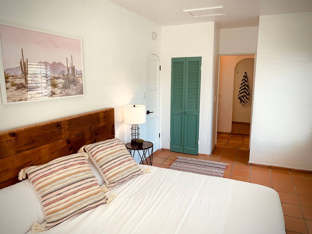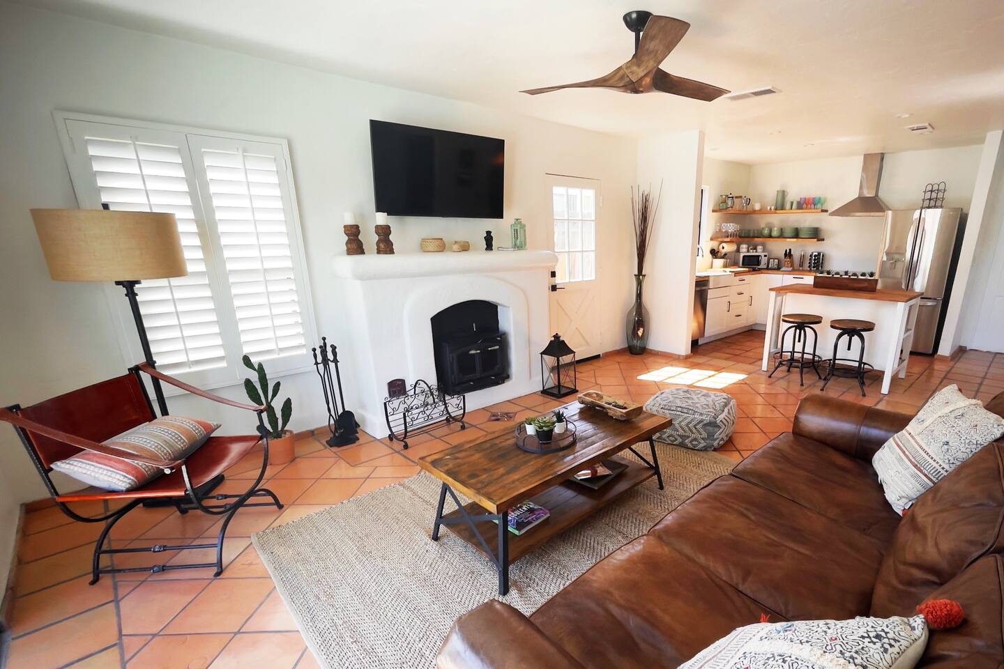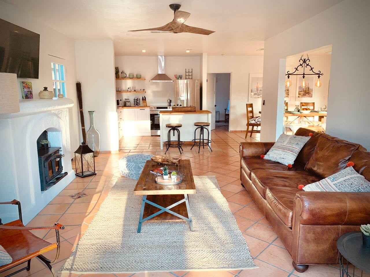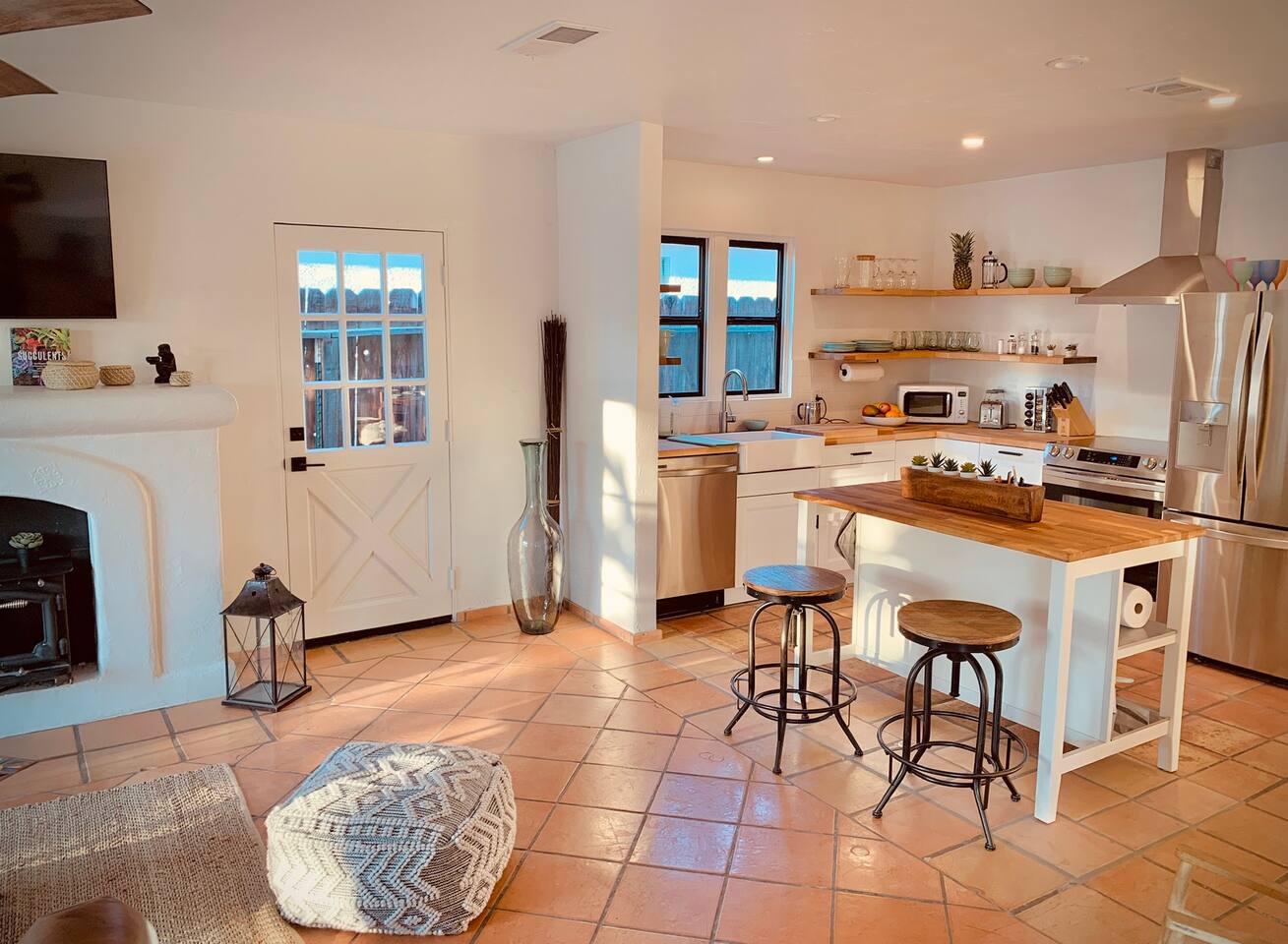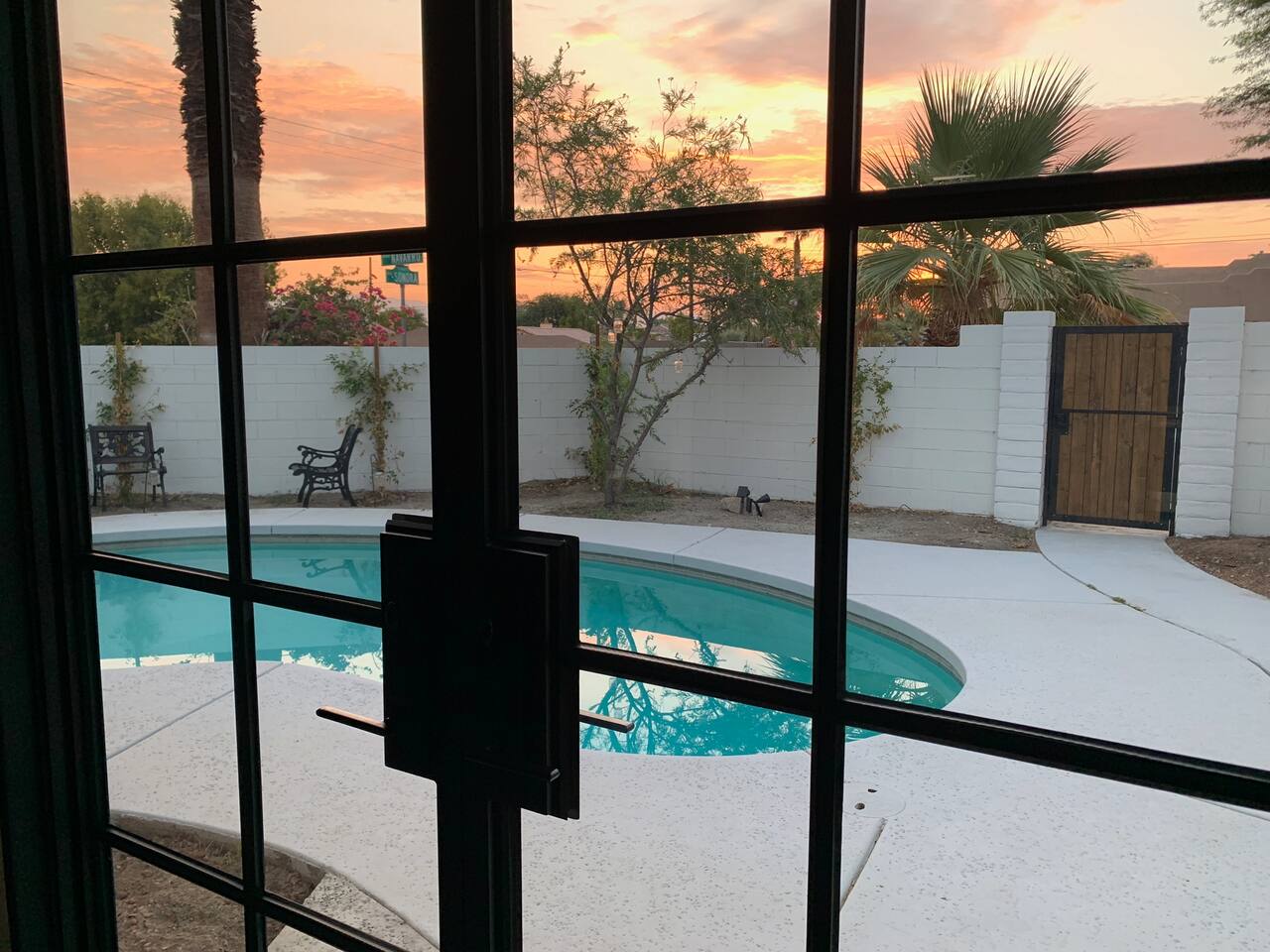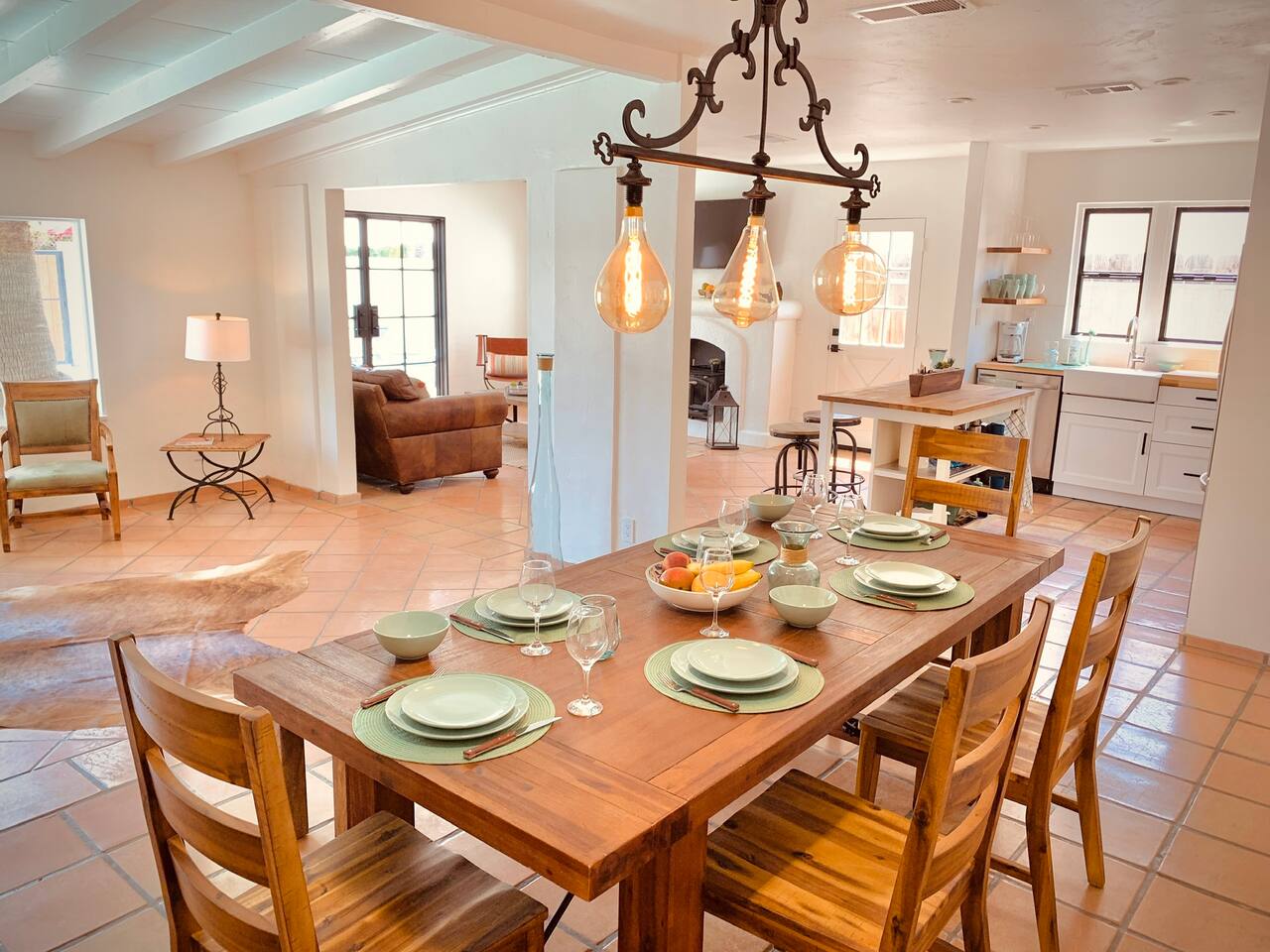 Encounter this authentic Spanish "Casita de Oliva" imagined in 1939 as one of the 63 unique Spanish Colonial casitas in the astonishing La Quinta Cove. We remodeled 2020 with utmost respect and consideration, celebrating the authentic charm and giving it a refreshed, expansive feel. Accumulated Furniture and decor thoughtfully, selecting rustic with a modern impression. Custom made Iron French doors escort you to the kidney-shaped pool heavens with mountains views and an infinite sky. Also, authentic Saltillo floors throughout the home. Hidden back patio with seating, Char-Broil BBQ, and a cactus garden. The golden Livingroom with an authentic wood-burning fireplace and direct access to the pool area, entertaining with a new Samsung 55 inch smart TV withYouTube Cable and Netflix. Bedroom 1 - access to the back patio with King mattress and a Samsung 45" smart TV with YouTube CAble and Netflix, Jack and Jill bathroom with shower with its original Spanish tiles. Bedroom 2 - with King mattress with Spanish original closets and 42 inch Samsung Smart TV. Bedroom 3 - Queen mattress, pleasant outlooks over the back patio, pamper your self in this all-new ensuite Bathroom with a plentiful step-in shower Kitchen - fully stocked and refurbished kitchen with a ceramic farmer's sink, Samsung dishwasher, LG stainless steel French door refrigerator with an icemaker and water dispenser. Also equipped with a coffeemaker, Keurig , French Press, Moka pot, milk frother, blender, and a microwave. Dining - Farmers dining table with seating for eight people and views over the pool area Laundry room - with new washer and dryer No Garage usage but one car parking spot in front, easy and free street parking right in front of the house shorterm license # 259354 Pool can be heated at an additional cost not included in booking.
