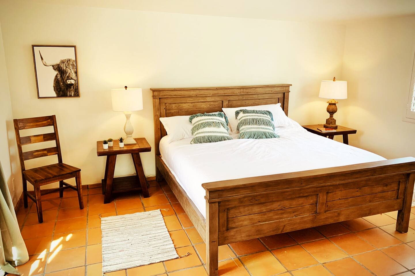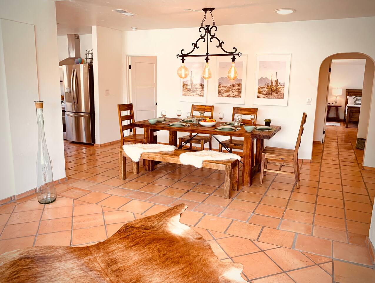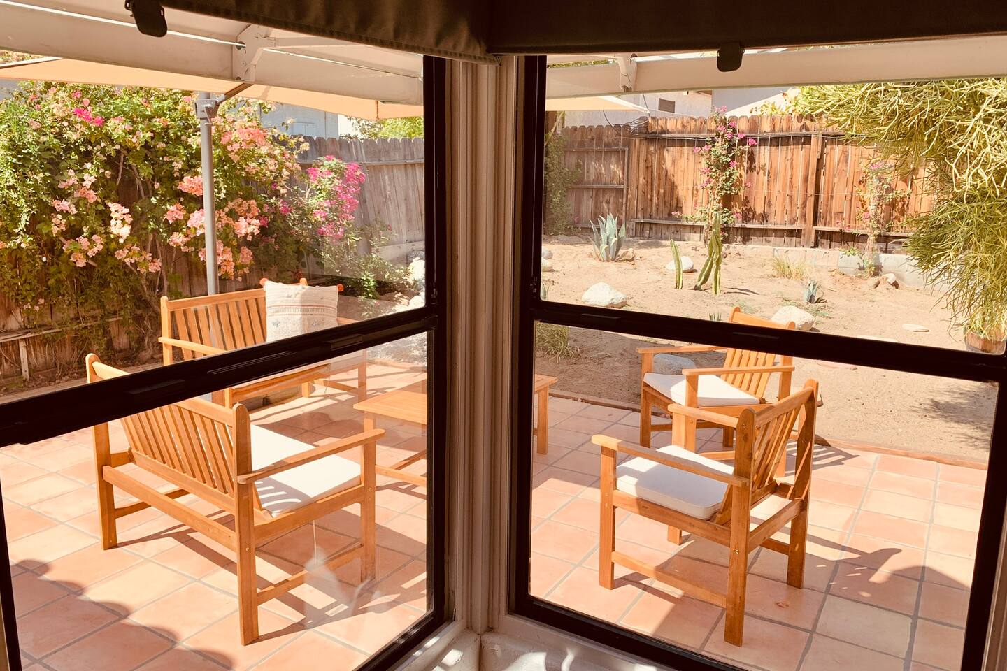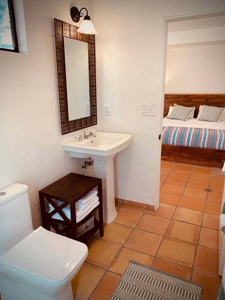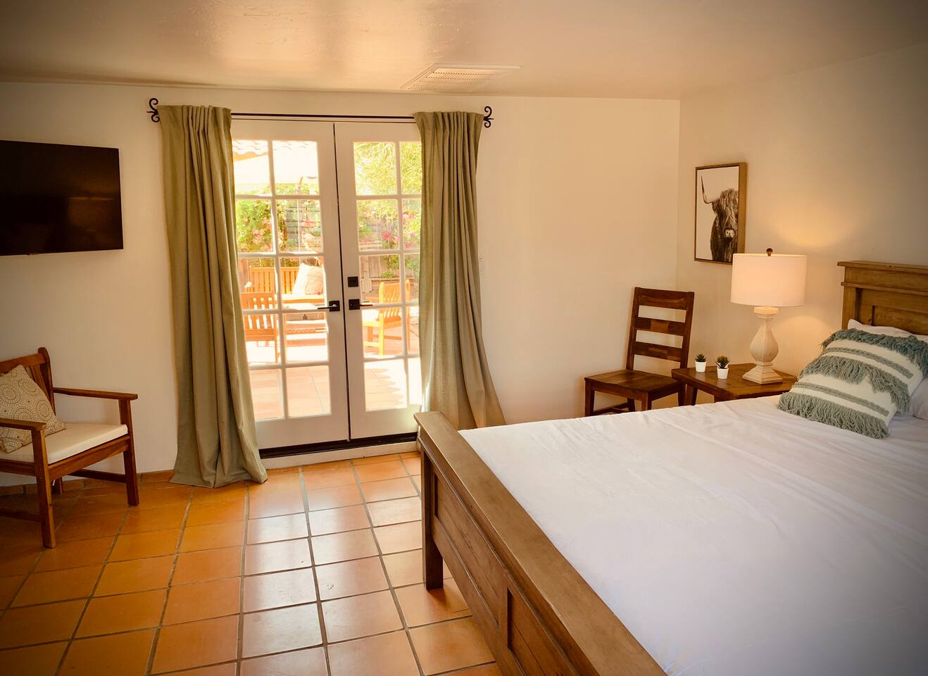 Encounter this authentic Spanish "Casita de Oliva" imagined in 1939 as one of the 63 unique Spanish Colonial casitas in the astonishing La Quinta Cove. We remodeled 2020 with utmost respect and consideration, celebrating the authentic charm and giving it a refreshed, expansive feel. Accumulated Furniture and decor thoughtfully, selecting rustic with a modern impression. Custom made Iron French doors escort you to the kidney-shaped pool heavens with mountains views and an infinite sky. Also, authentic Saltillo floors throughout the home. Hidden back patio with seating, Char-Broil BBQ, and a cactus garden. The golden Livingroom with an authentic wood-burning fireplace and direct access to the pool area, entertaining with a new Samsung 55 inch smart TV withYouTube Cable and Netflix. Bedroom 1 - access to the back patio with King mattress and a Samsung 45" smart TV with YouTube CAble and Netflix, Jack and Jill bathroom with shower with its original Spanish tiles. Bedroom 2 - with King mattress with Spanish original closets and 42 inch Samsung Smart TV. Bedroom 3 - Queen mattress, pleasant outlooks over the back patio, pamper your self in this all-new ensuite Bathroom with a plentiful step-in shower Kitchen - fully stocked and refurbished kitchen with a ceramic farmer's sink, Samsung dishwasher, LG stainless steel French door refrigerator with an icemaker and water dispenser. Also equipped with a coffeemaker, Keurig , French Press, Moka pot, milk frother, blender, and a microwave. Dining - Farmers dining table with seating for eight people and views over the pool area Laundry room - with new washer and dryer No Garage usage but one car parking spot in front, easy and free street parking right in front of the house shorterm license # 259354 Pool can be heated at an additional cost not included in booking.