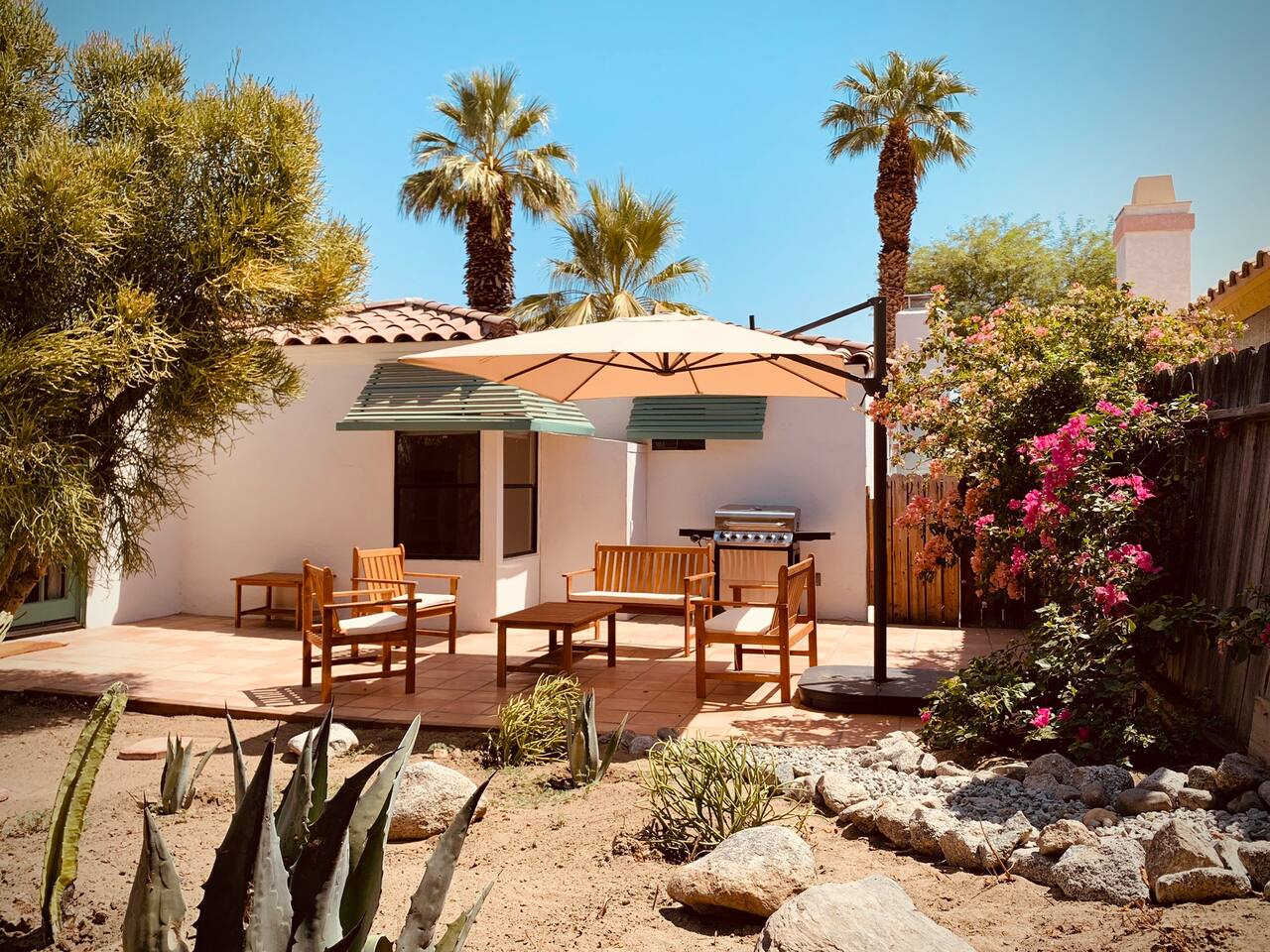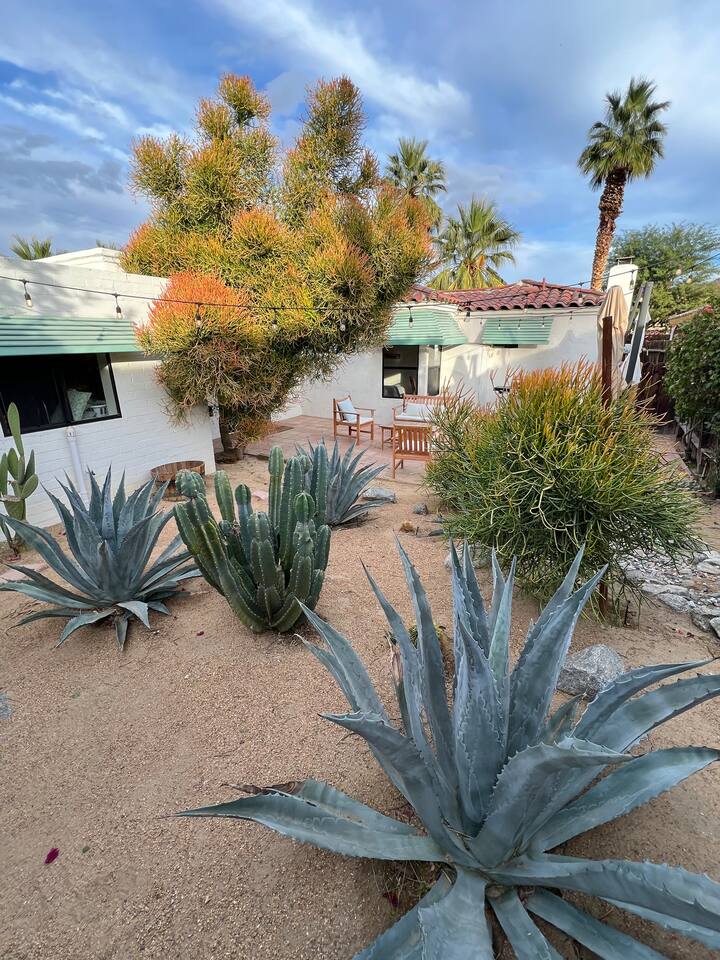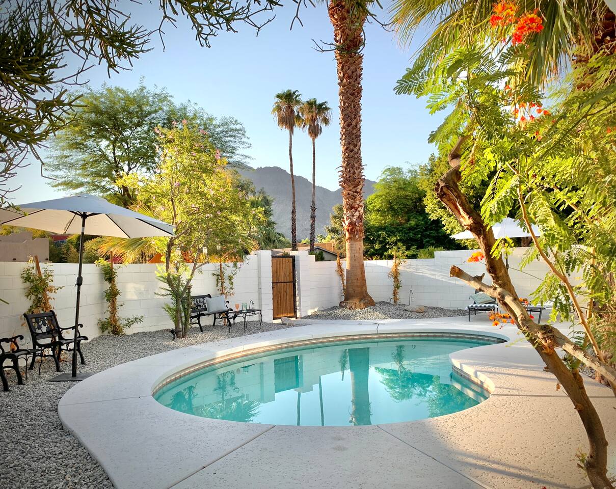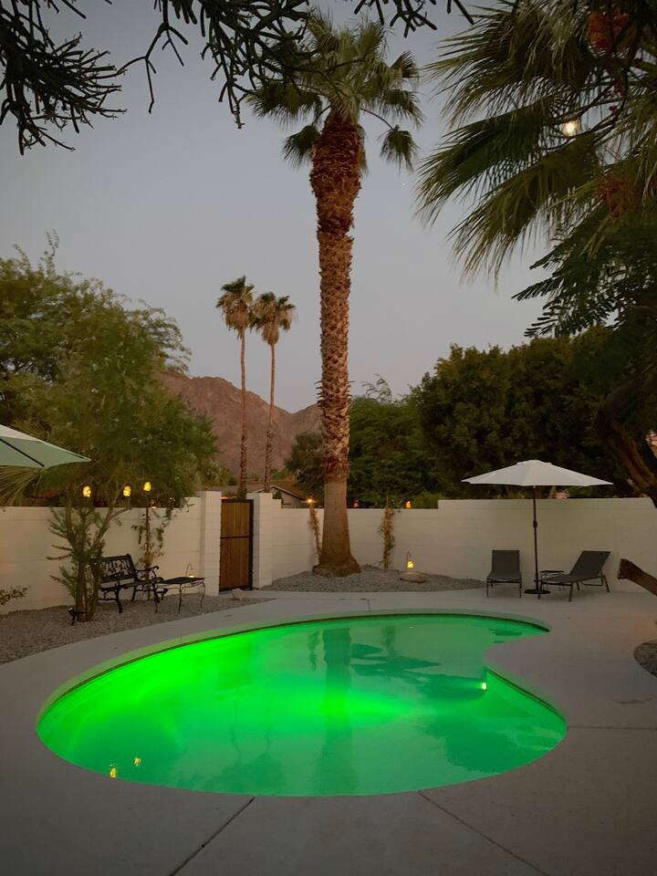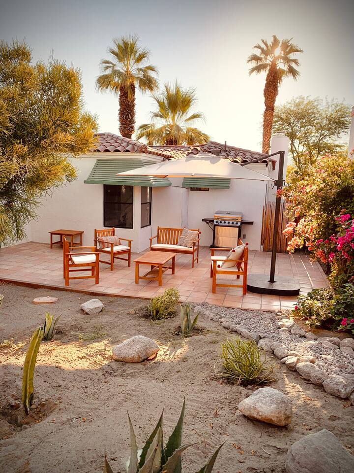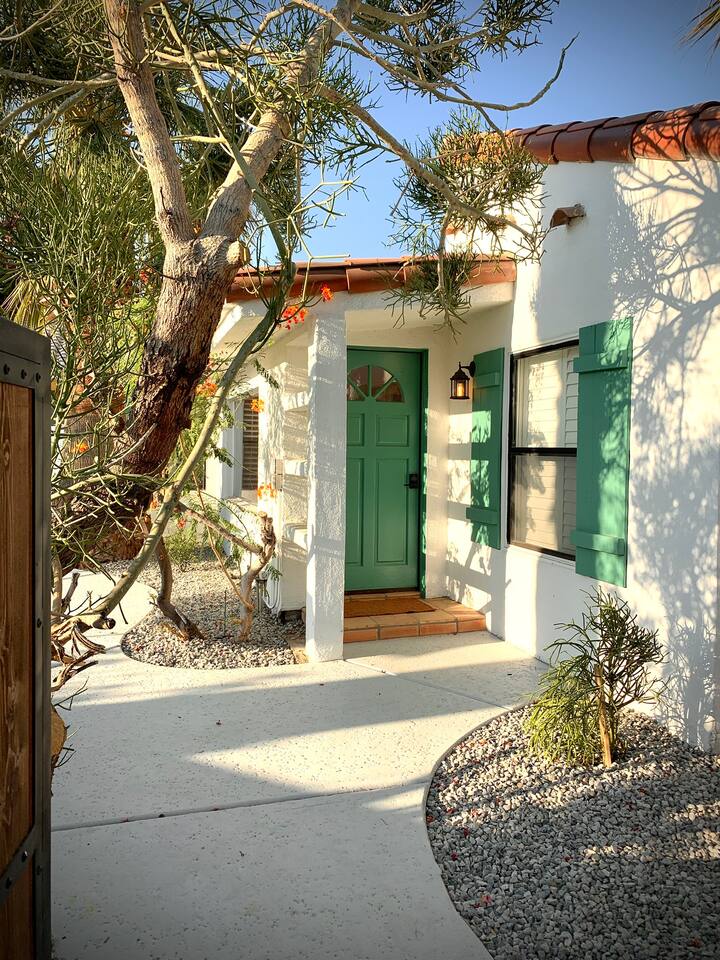 Casita de Oliva " was created in 1939 as one of the 63 rare Spanish Colonial casitas in the La Quinta Cove. Private gated pool with an astounding mountain scene Sequestered gated garden Pet-Friendly Central Nest AC / Heat Wifi secured high speed 3 Smart TV's with YOUTUBE Cable and Netflix Back terrace with seating area and new Char-Broil BBQ and a picturesque cactus garden Hiking / Biking paths close by La Quinta Old Town shopping and dining within walking Public tennis courts close by