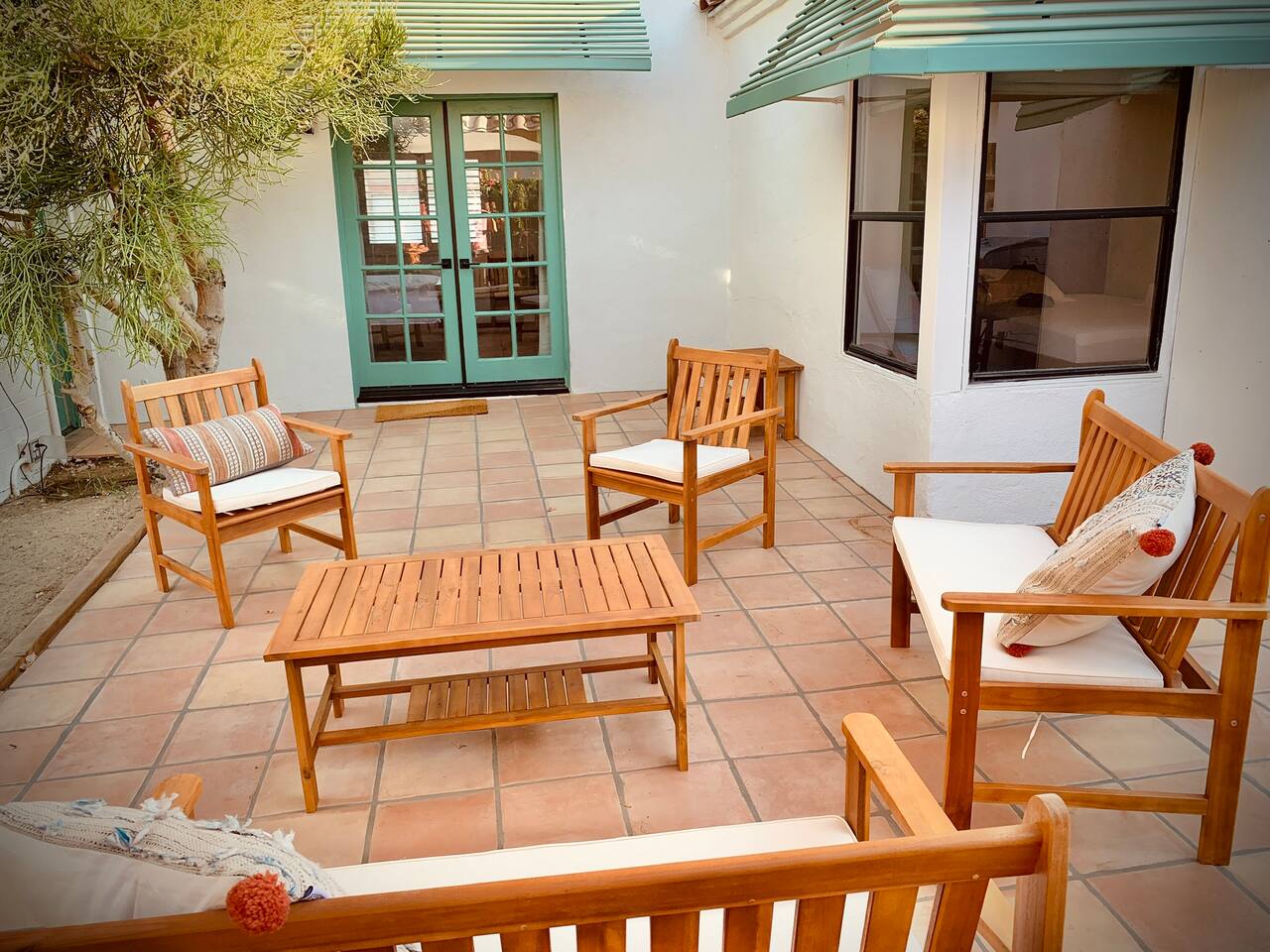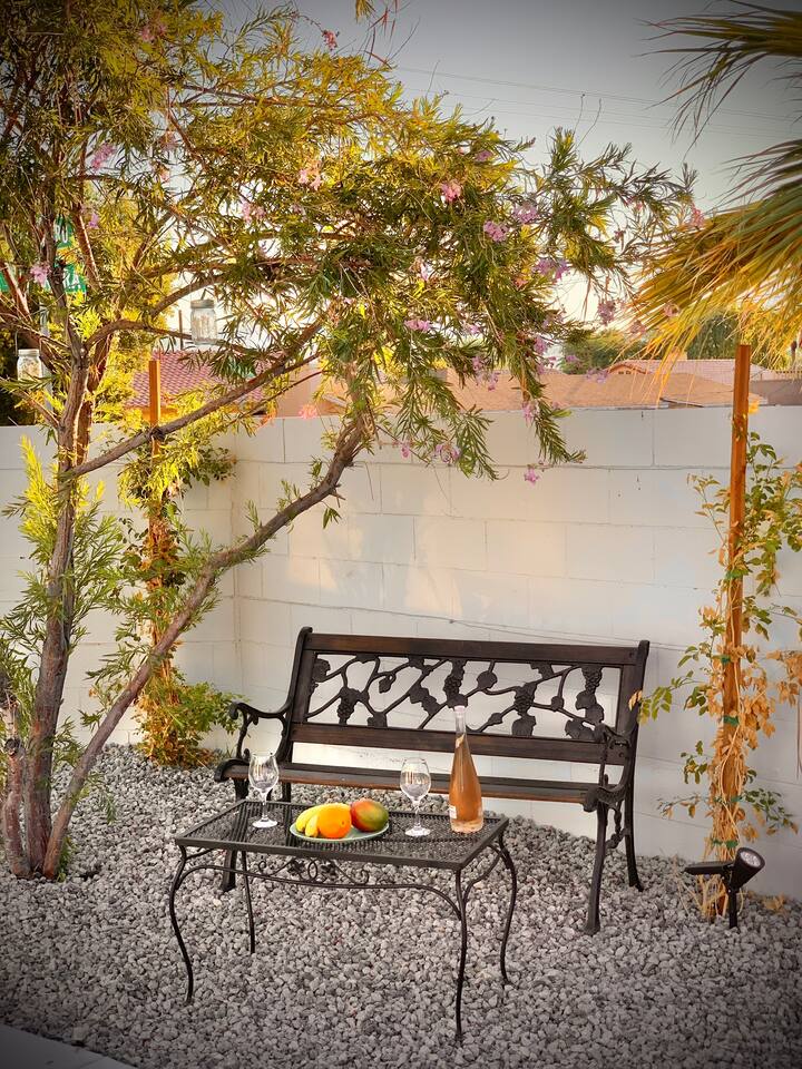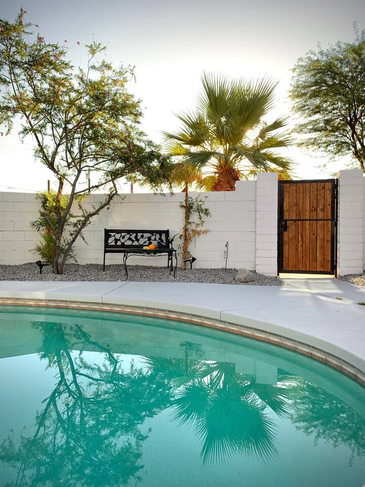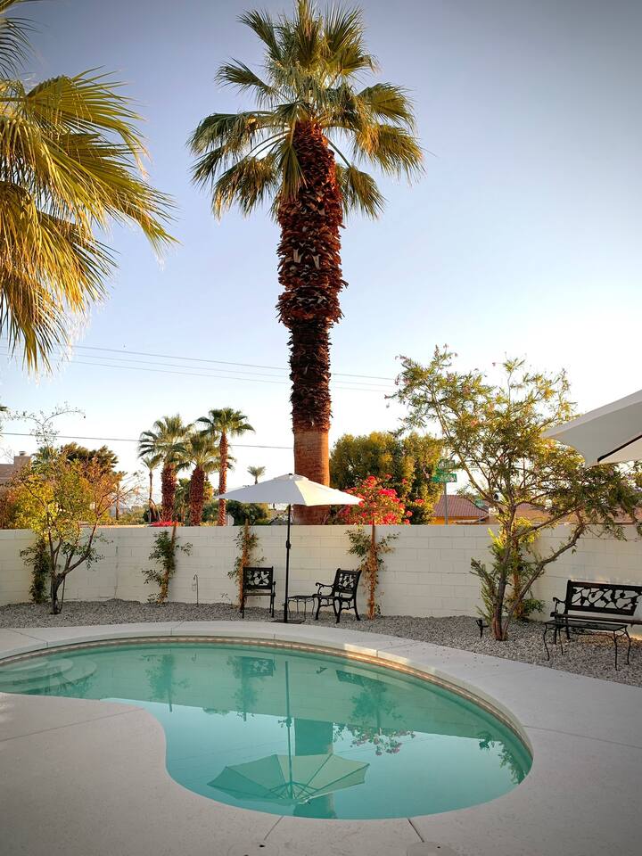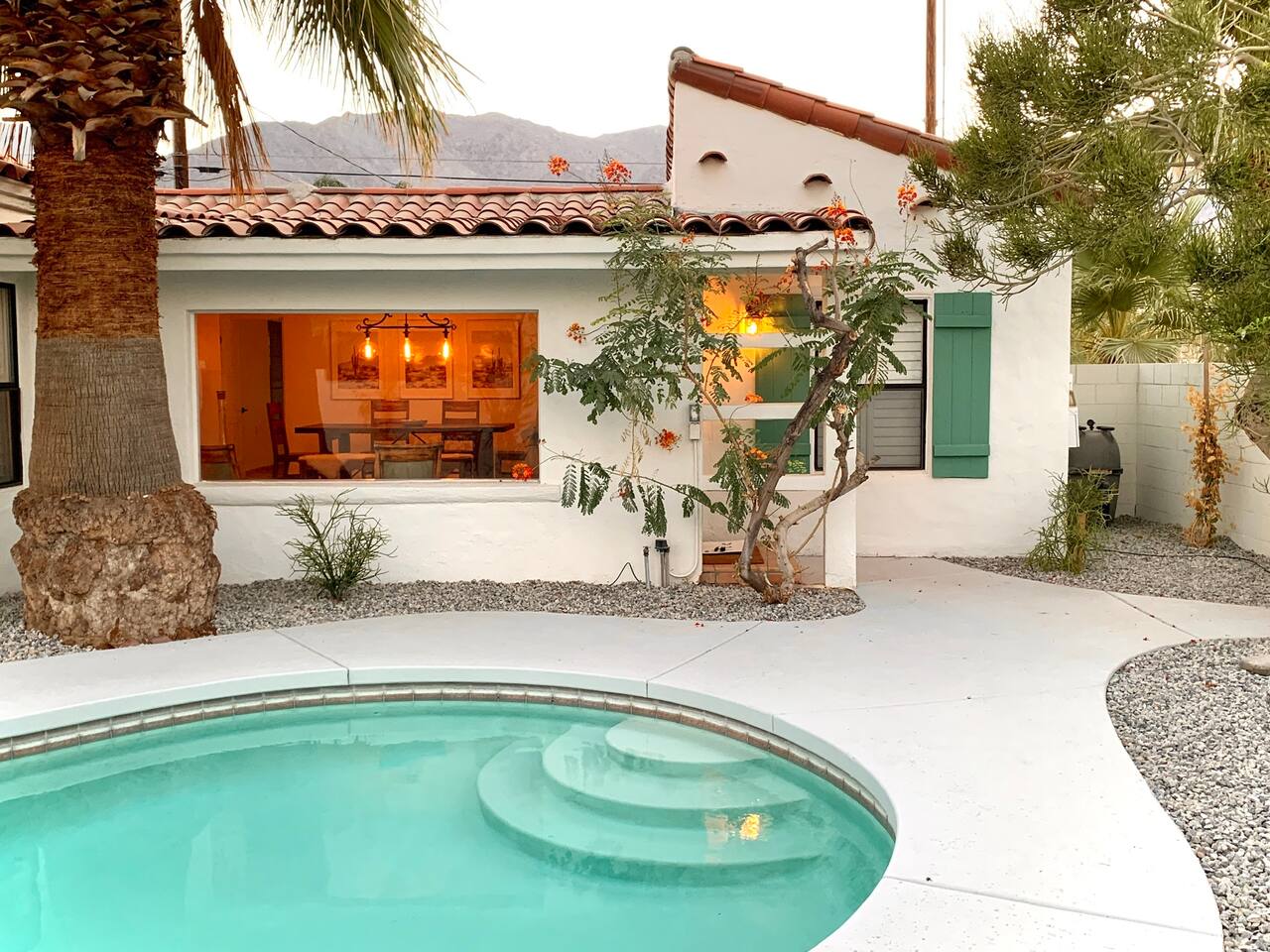 Casita de Oliva " was created in 1939 as one of the 63 rare Spanish Colonial casitas in the La Quinta Cove. Private gated pool with an astounding mountain scene Sequestered gated garden Pet-Friendly Central Nest AC / Heat Wifi secured high speed 3 Smart TV's with YOUTUBE Cable and Netflix Back terrace with seating area and new Char-Broil BBQ and a picturesque cactus garden Hiking / Biking paths close by La Quinta Old Town shopping and dining within walking Public tennis courts close by