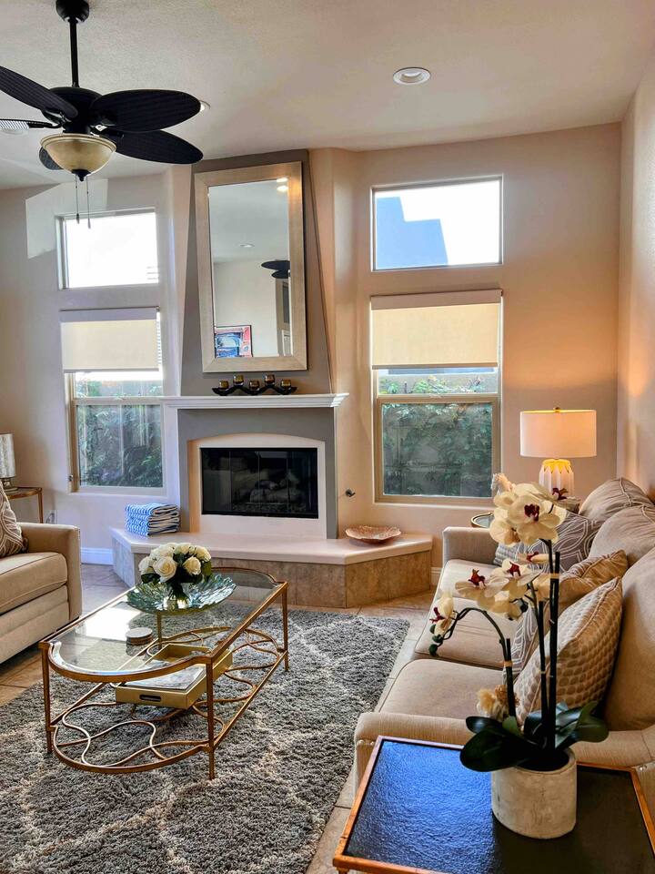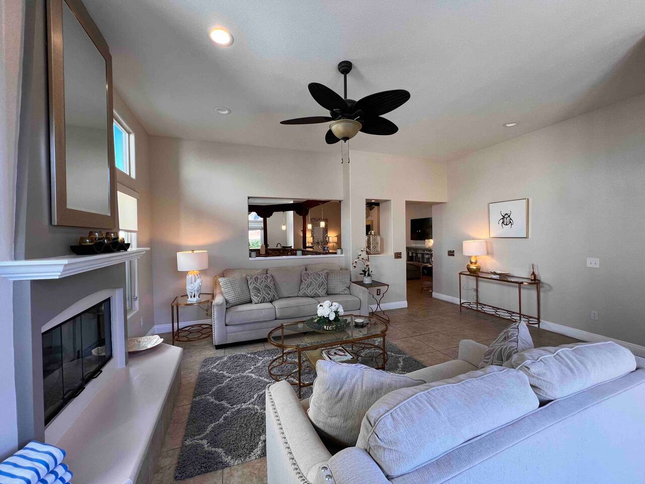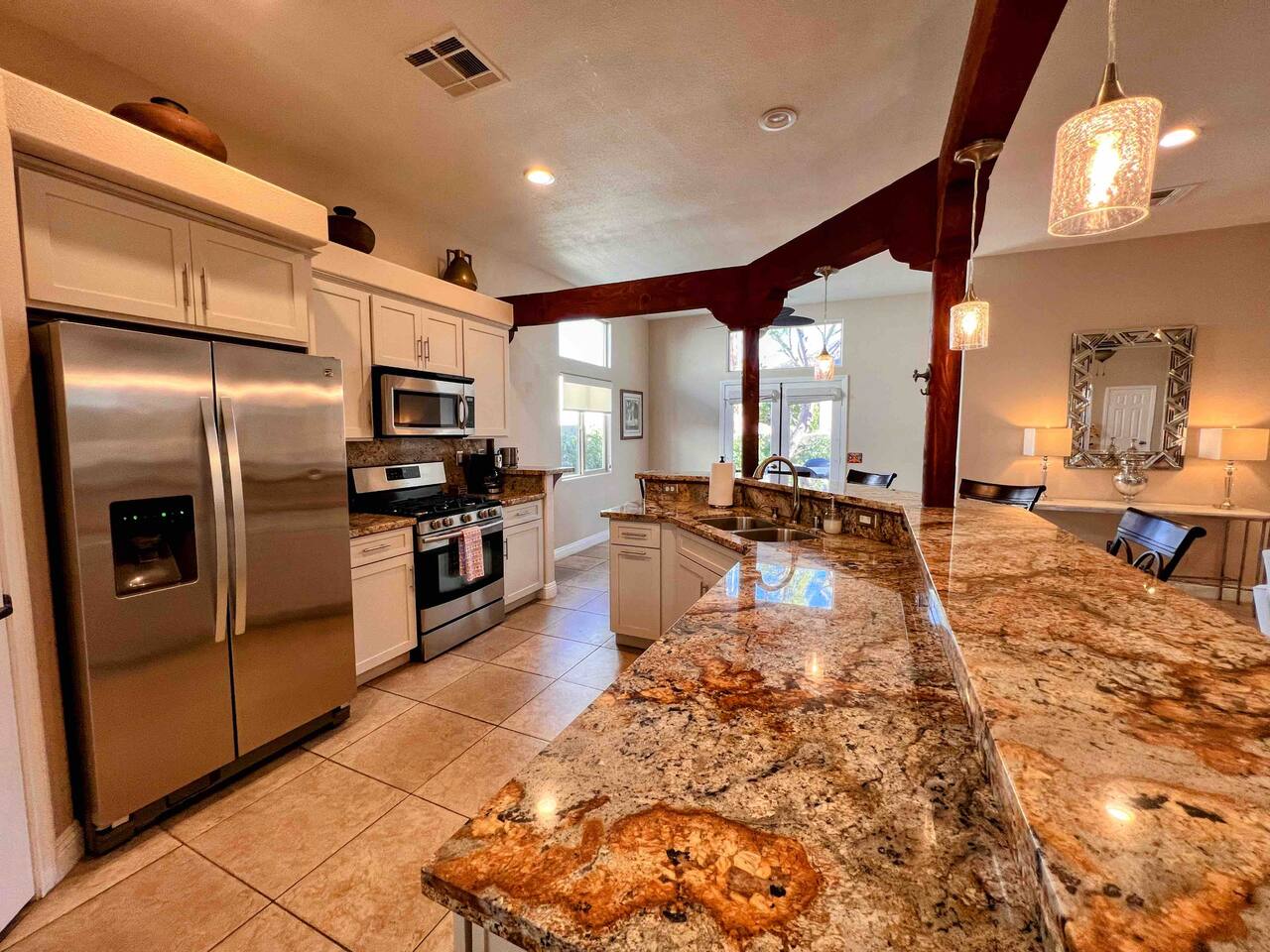 Fabulous luxurious SINGLE LEVEL executive POOL/SPA home ,DESIGNER furnished, this spacious 1925 sq. ft. premium property is located in the COVE close to 'Old Town la Quinta'. Remarkable VIEWS of the Santa Rosa Mountain range; close to shopping and some of the finest GOLF courses in the world and just a step away from the INDIAN WELLS TENNIS CENTER. The remarkable over-size eat-in kitchen is well equipped. The kitchen features GRANITE counter tops and state of the art appliances, french door stainless steel refrigerator w/ice maker, toaster, microwave, dishwasher, garbage disposal, coffee maker... Spacious PRIVATE MASTER BED SUITE with Walk in closet. It offers complete Privacy and Quietness with LUXURY , lavish Master Bath with large Travertine Shower , 10 ft. ceilings and french doors leading out to the patio with mountain views 2 additional quiet bedrooms suites features a plush Queen-sized bed Whether it is PLEASURE or BUSINESS that brings you to La Quinta/Palm Springs, you will want to play a round of GOLF at one of the many marvelous golf courses, go HIKING all day, play TENNIS (courts just 5 min away and for FREE) enjoy a day of SHOPPING on 'El Paseo' or pamper yourself at one of the FULL SERVICE SPAS as the classy historical 'LA QUINTA Resort and Club WALDORF ASTORIA' just steps away. The best spot in the morning to get your coffee is 'THE OLD TOWN' of La Quinta just 2 min. by car, which has the FARMERS MARKET on the weekends and some exquisite Antique stores, Wine tasting, Hip Bars. This magnificent rental home has all the LUXURY and COMFORT YOU need to ENJOY the perfect stay in the desert... YOU WILL GET THE ULTIMATE VACATION. Keywords: newer modern Santa Fe Style, one story, heated pool, spa, mountain views, private, gated, la Quinta,fireplace, gated yard, hiking trails,biking rails,sunny,Travertine,,central air, pet friendly, open floor-plan,new designer furnishings,