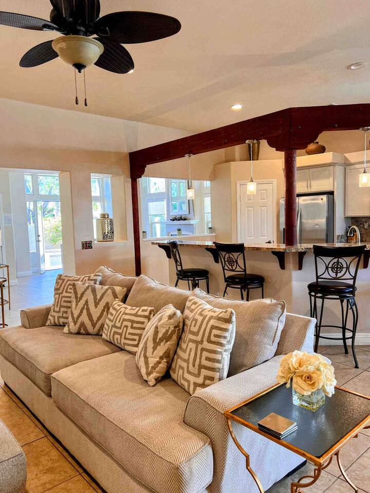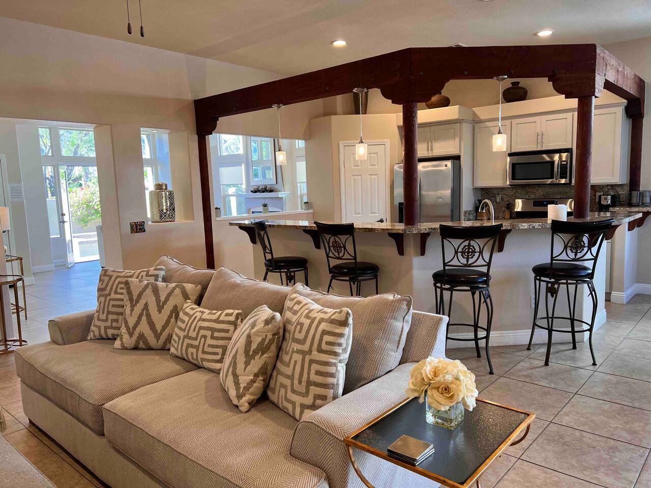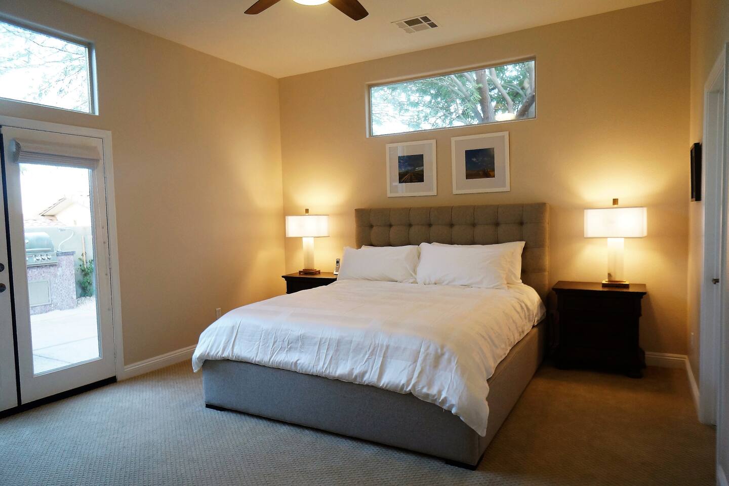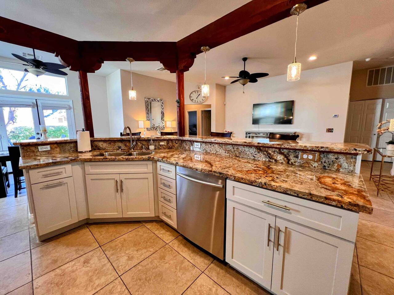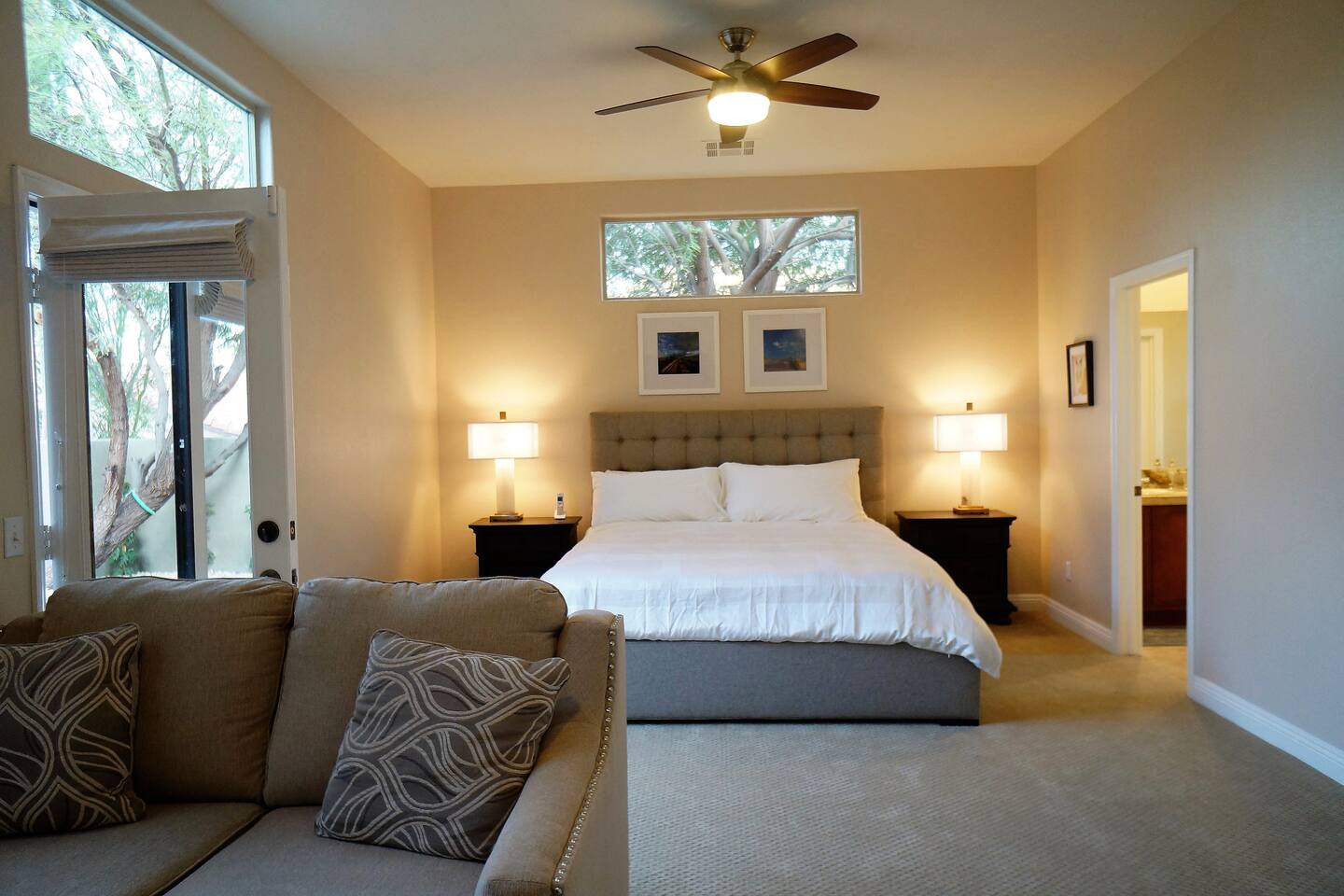 Elegant one story Santa Fe Pool/Spa Home offering 3 BR, 2 BA; sleeps 6 1925 sq ft., 2 Patios, 2 Car Garage. * PRIVATE POOL with SPA and Waterfall offering stunning unobstructed mountain views high up in the Cove. * Hiking Trails close by * WIRELESS high-speed Internet * YouTube Cable, Netflix, Hulu+ Amazon Prime * Family room with Entertainers Kitchen * outside barbeque with dining table * launch chairs * sun umbrella