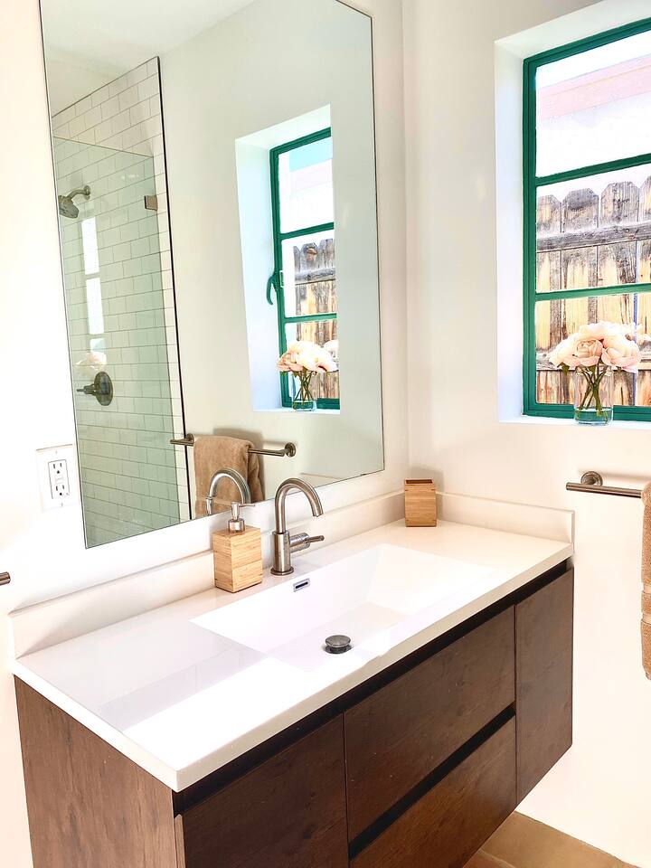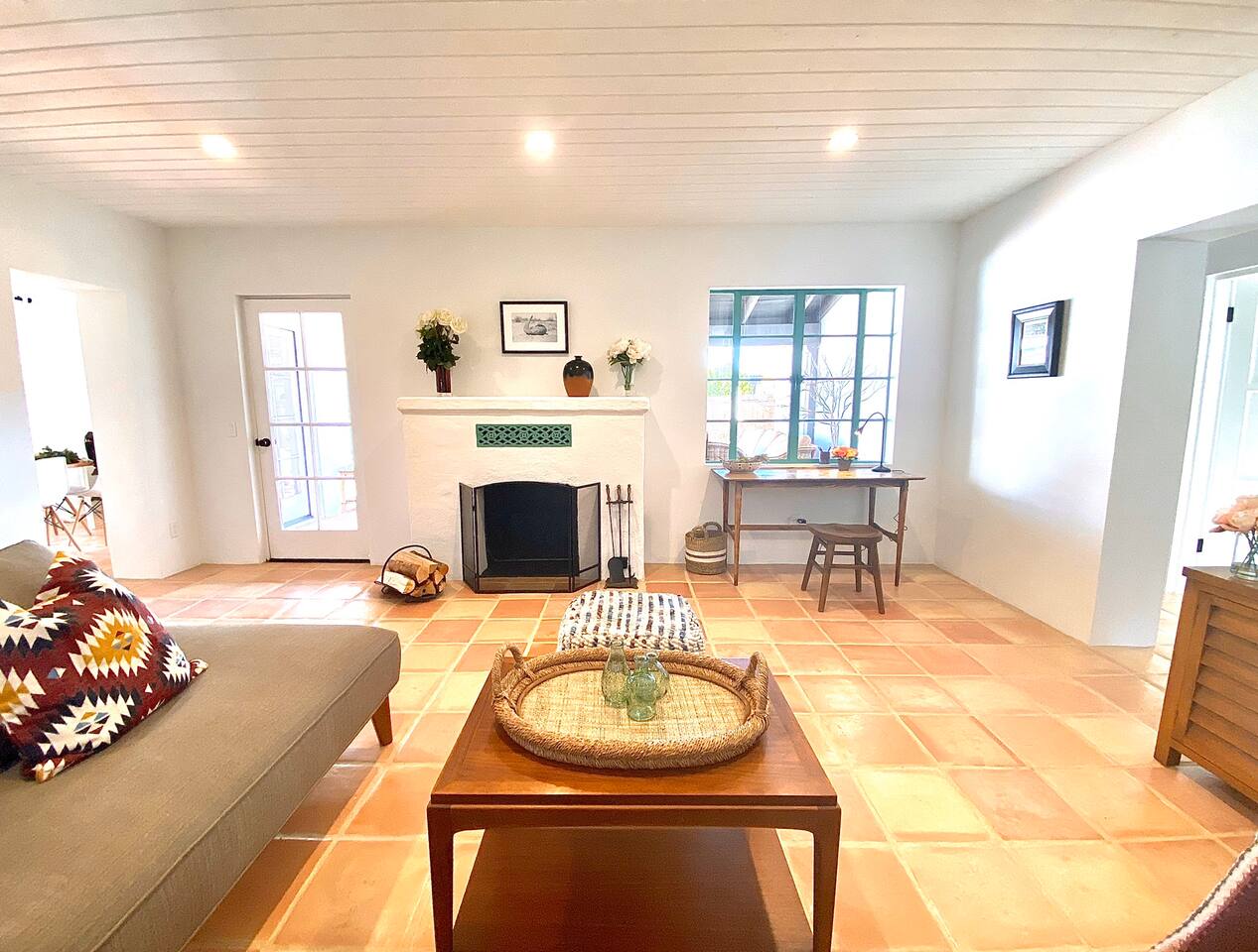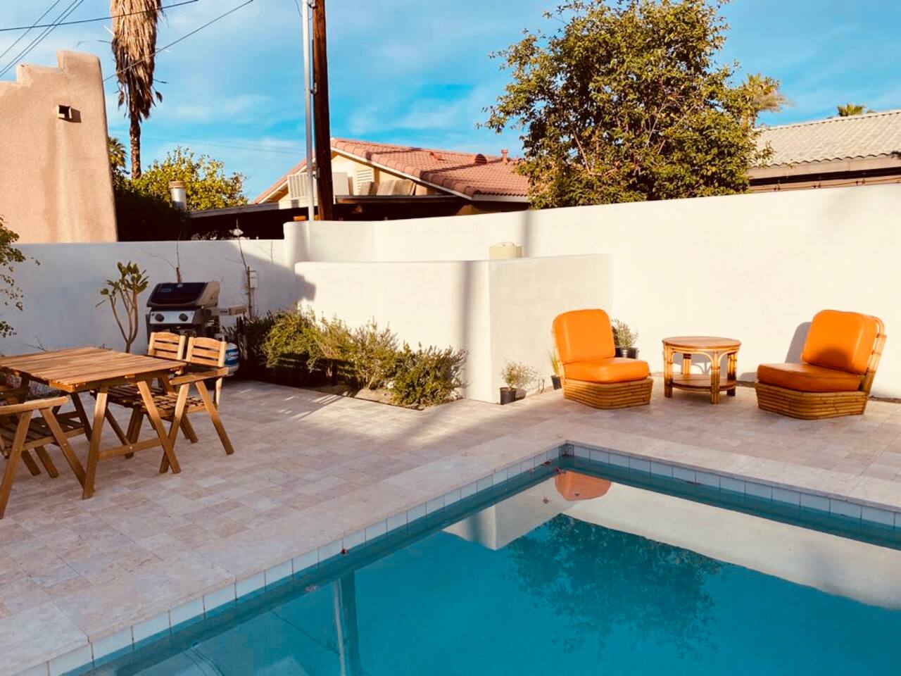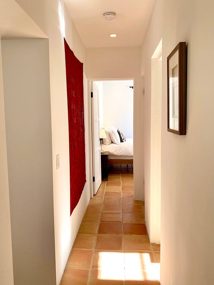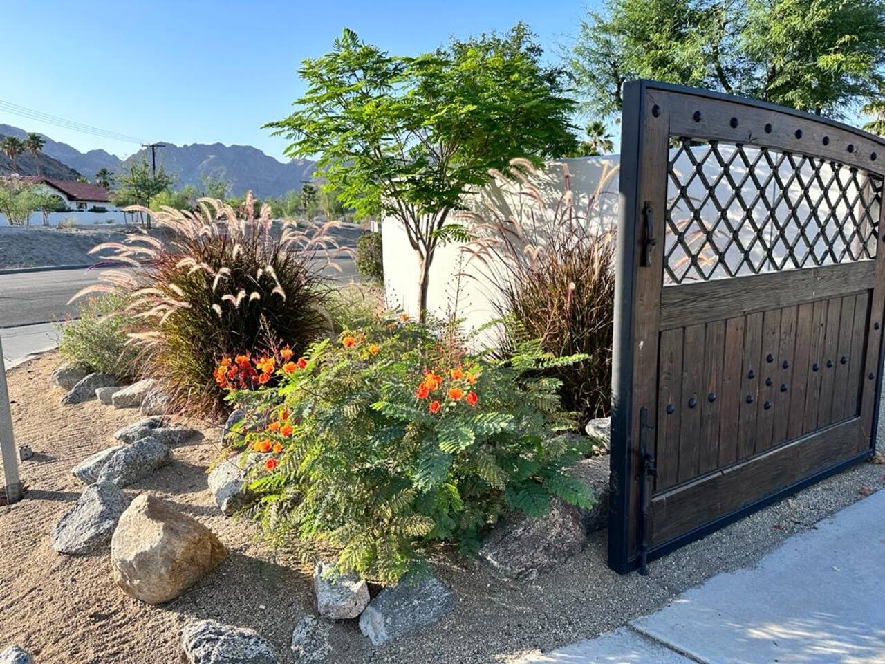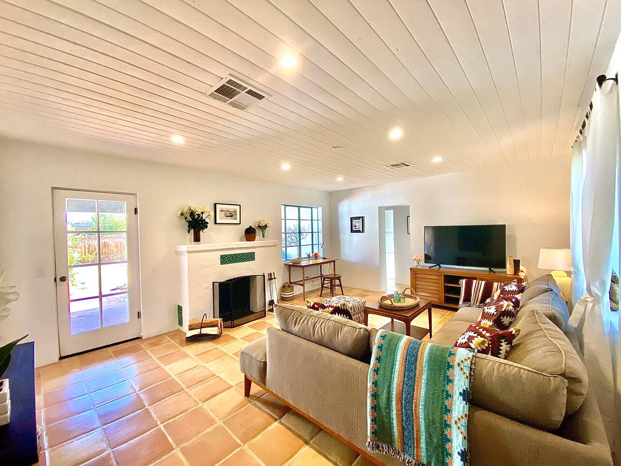 Encounter this authentic Spanish Darling Casita with its NEW scintillating extensive Saltwater Pool and Spa, clandestinely situated in the back of the property fully gated, brilliantly located close to town, and endless hiking/biking trails steps from the front door. Fully remodeled with utmost respect and consideration, be taken by its antiquity and charm. You quickly feel at home, especially observing the original fabulous double-wood-burning fireplace as the star of the living room, including direct access to the covered private back patio with its fully gated saltwater pool with spa and breathtaking mountain views, a secondary fireplace with comfy seating. The rear garden also offers a Weber BBQ with a patio table with seating for four and two launch chairs. The residence flaunts thick Adobe-like walls maintaining the home fresh during the hot desert summers and warm during the crisp winter nights. Also, Saltillo floors throughout the house. The living room has a New Sony SMART TV 55” with cable, Netflix, and other applications. Bedrooms - each bedroom has a new queen mattress with luxury linens and views either over the calming garden or the impressive Santa Rosa mountains. Bathroom - pamper yourself in this all-new bathroom with a substantial step-in shower and a generous modern sink. We also provide organic shampoo, conditioner, and body wash. Kitchen - fully stocked and refurbished kitchen with a stainless steel farmer’s sink, Bosch dishwasher, Samsung French door refrigerator with an icemaker. Equipped with a coffeemaker, French Press, Moka pot, milk frother, blender, and a microwave. Dining - dining table with seating for six people and direct access to the kitchen and the patio. laundry - we have a new washer and dryer