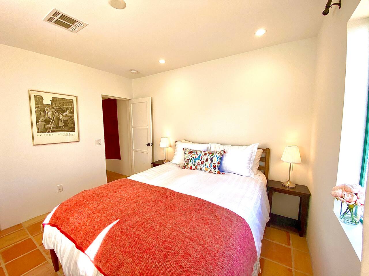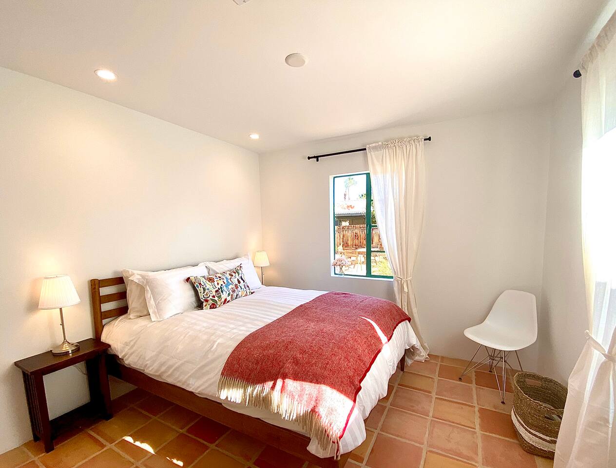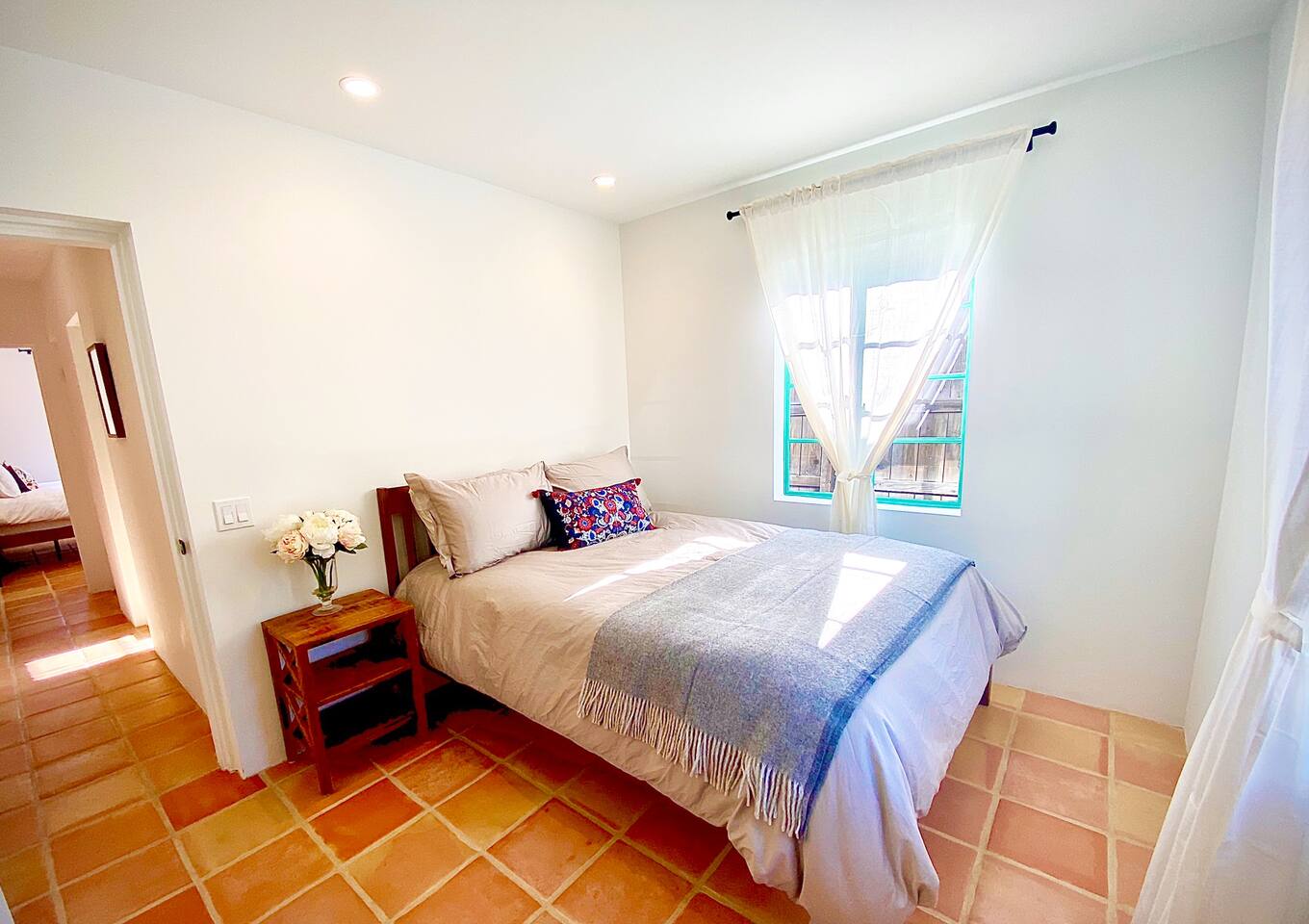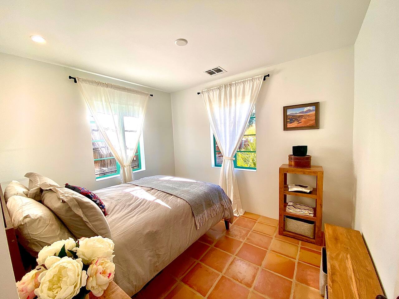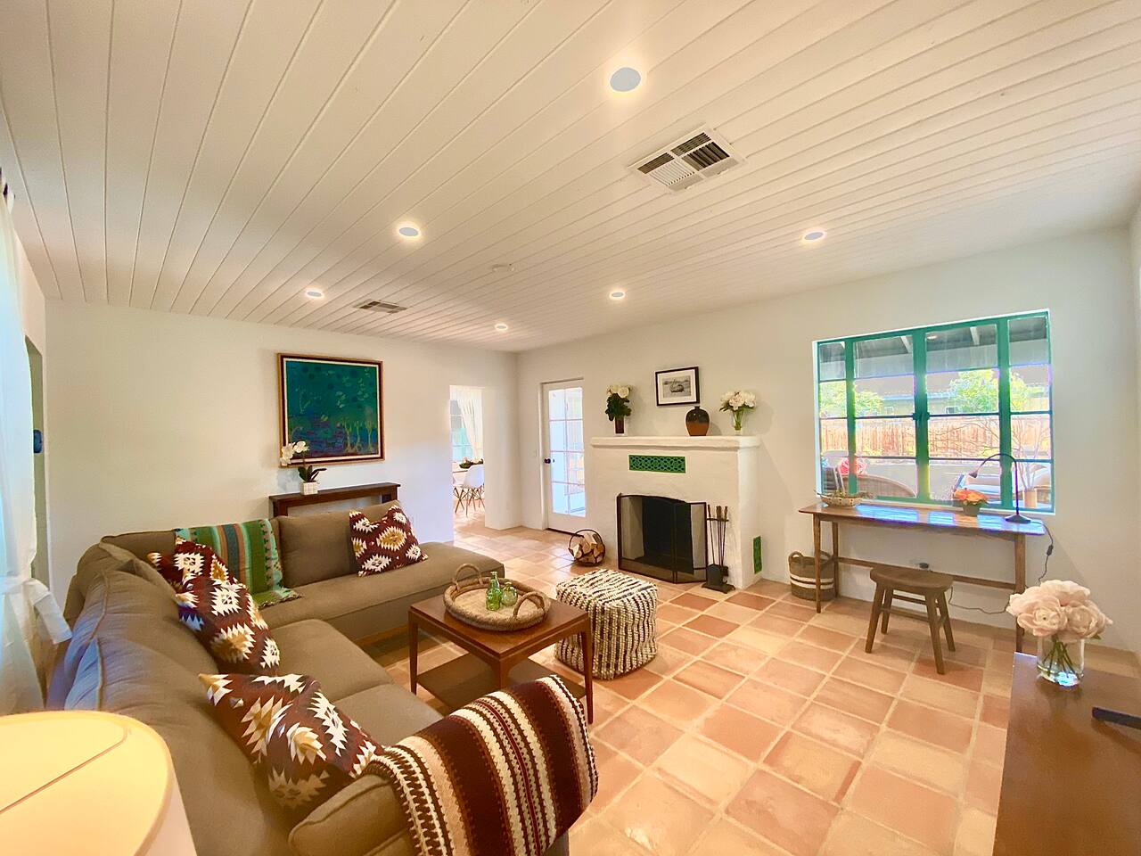 Encounter this authentic Spanish Darling Casita with its NEW scintillating extensive Saltwater Pool and Spa, clandestinely situated in the back of the property fully gated, brilliantly located close to town, and endless hiking/biking trails steps from the front door. Fully remodeled with utmost respect and consideration, be taken by its antiquity and charm. You quickly feel at home, especially observing the original fabulous double-wood-burning fireplace as the star of the living room, including direct access to the covered private back patio with its fully gated saltwater pool with spa and breathtaking mountain views, a secondary fireplace with comfy seating. The rear garden also offers a Weber BBQ with a patio table with seating for four and two launch chairs. The residence flaunts thick Adobe-like walls maintaining the home fresh during the hot desert summers and warm during the crisp winter nights. Also, Saltillo floors throughout the house. The living room has a New Sony SMART TV 55” with cable, Netflix, and other applications. Bedrooms - each bedroom has a new queen mattress with luxury linens and views either over the calming garden or the impressive Santa Rosa mountains. Bathroom - pamper yourself in this all-new bathroom with a substantial step-in shower and a generous modern sink. We also provide organic shampoo, conditioner, and body wash. Kitchen - fully stocked and refurbished kitchen with a stainless steel farmer’s sink, Bosch dishwasher, Samsung French door refrigerator with an icemaker. Equipped with a coffeemaker, French Press, Moka pot, milk frother, blender, and a microwave. Dining - dining table with seating for six people and direct access to the kitchen and the patio. laundry - we have a new washer and dryer