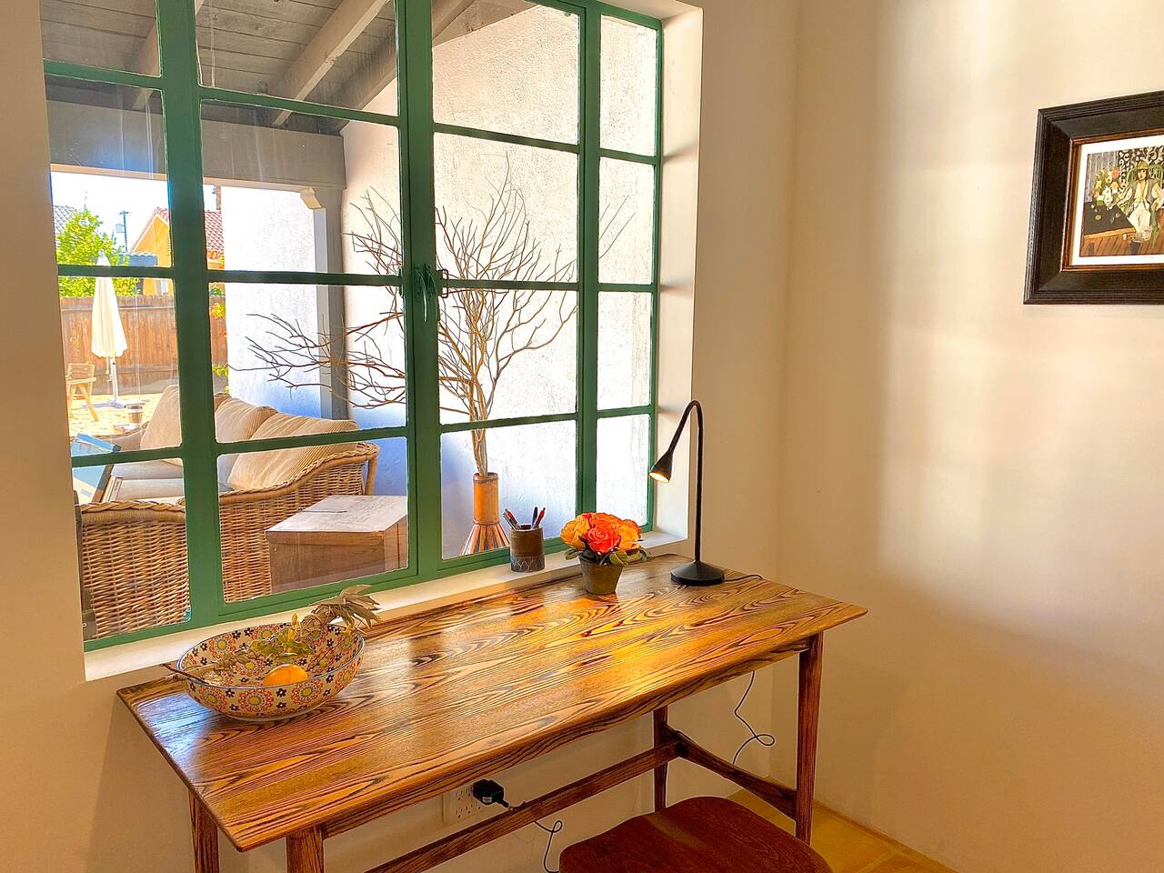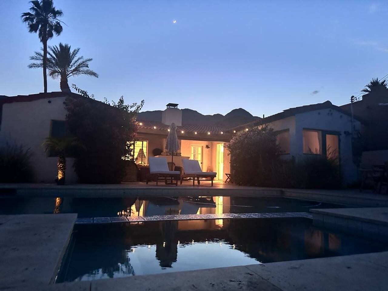 "Casita Luna" was built in the La Quinta Cove in 1937 as one of the 63 Spanish style Casitas -Gated backyard inspired by the Cahuilla Tribe - Saltwater Pool and Spa - Pet-Friendly -Central AC/Heat - Wifi secured high speed - 55” HDTV smart TV with cable box - Covered Back porch with original wood-burning outdoor fireplace - Hiking/Biking paths close by - La Quinta Old Town shopping and dining within walking distance - Public tennis courts close by - Weber BBQ grill - out side shower