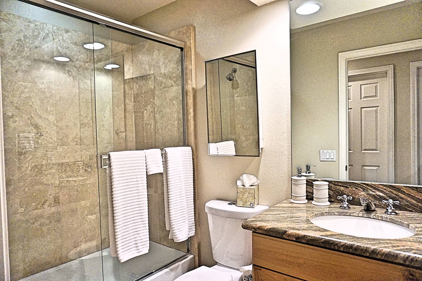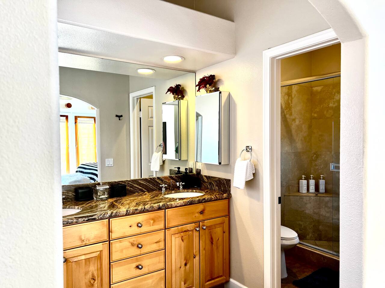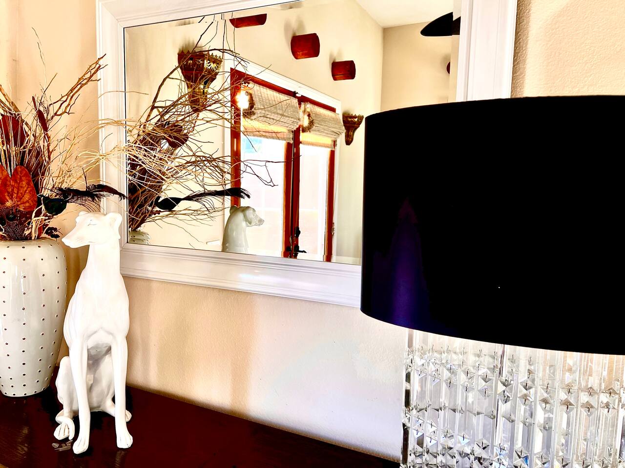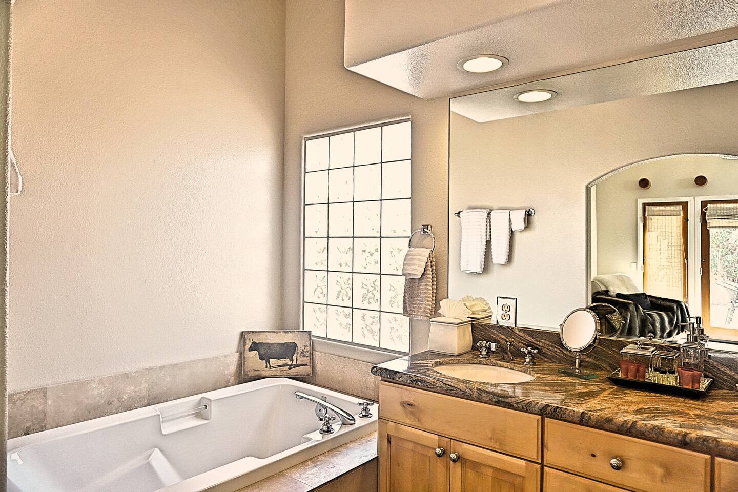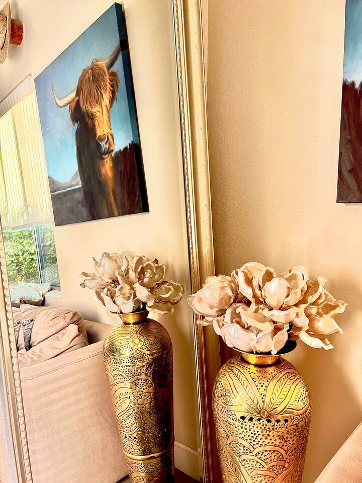 * PRIVATE PebbleTech Pool/Spa with Waterfall * Pet lovers welcome, fully walled * Fast, secure WiFi * We offer Netflix, Hulu, Apple TV, HBO Max, Starz, YouTube, Sling, and Spectrum * Elegant Living Room with 50" TV and Roku * Large Primary Bedroom with 55" TV and Roku * Second Bedroom with 50" TV and Roku * Two patios with outdoor tables and chairs for six * Hiking/Biking trails nearby * Public tennis courts and pickleball courts nearby * Gas barbecue * Two lounge chairs with an umbrella