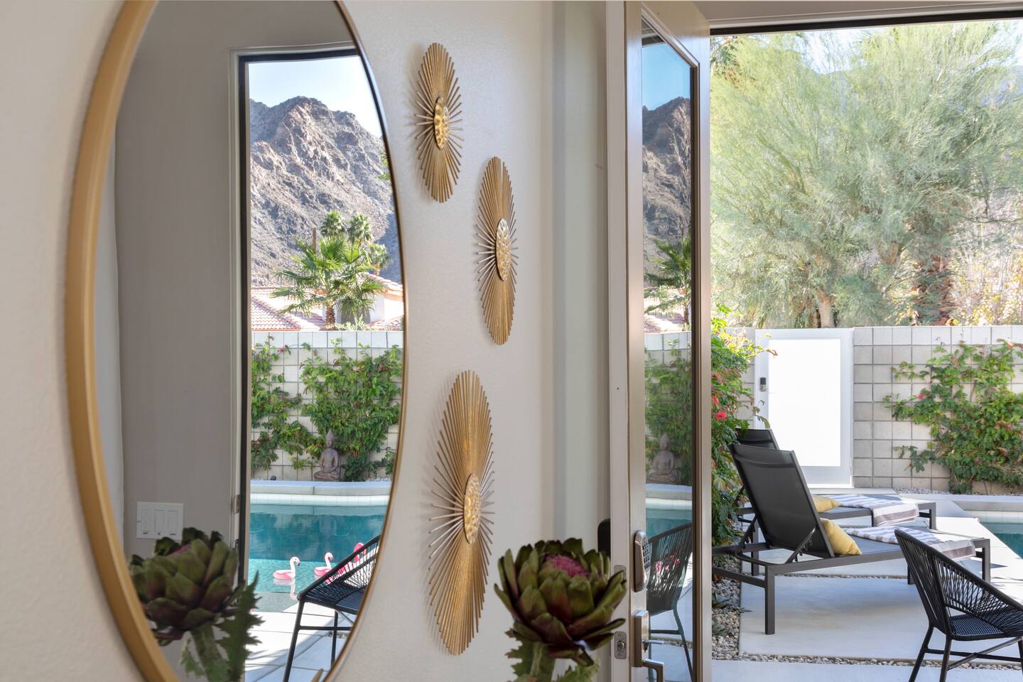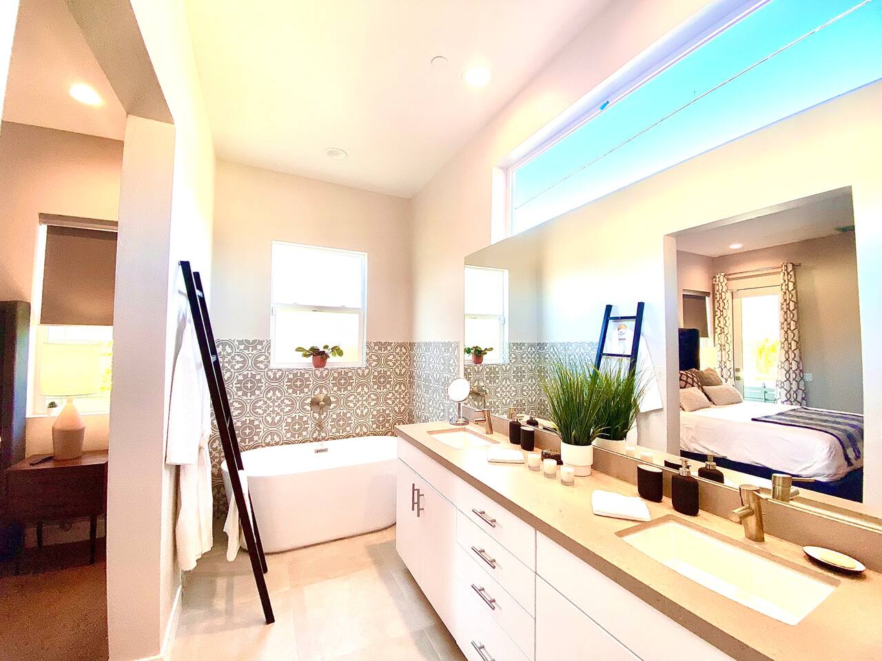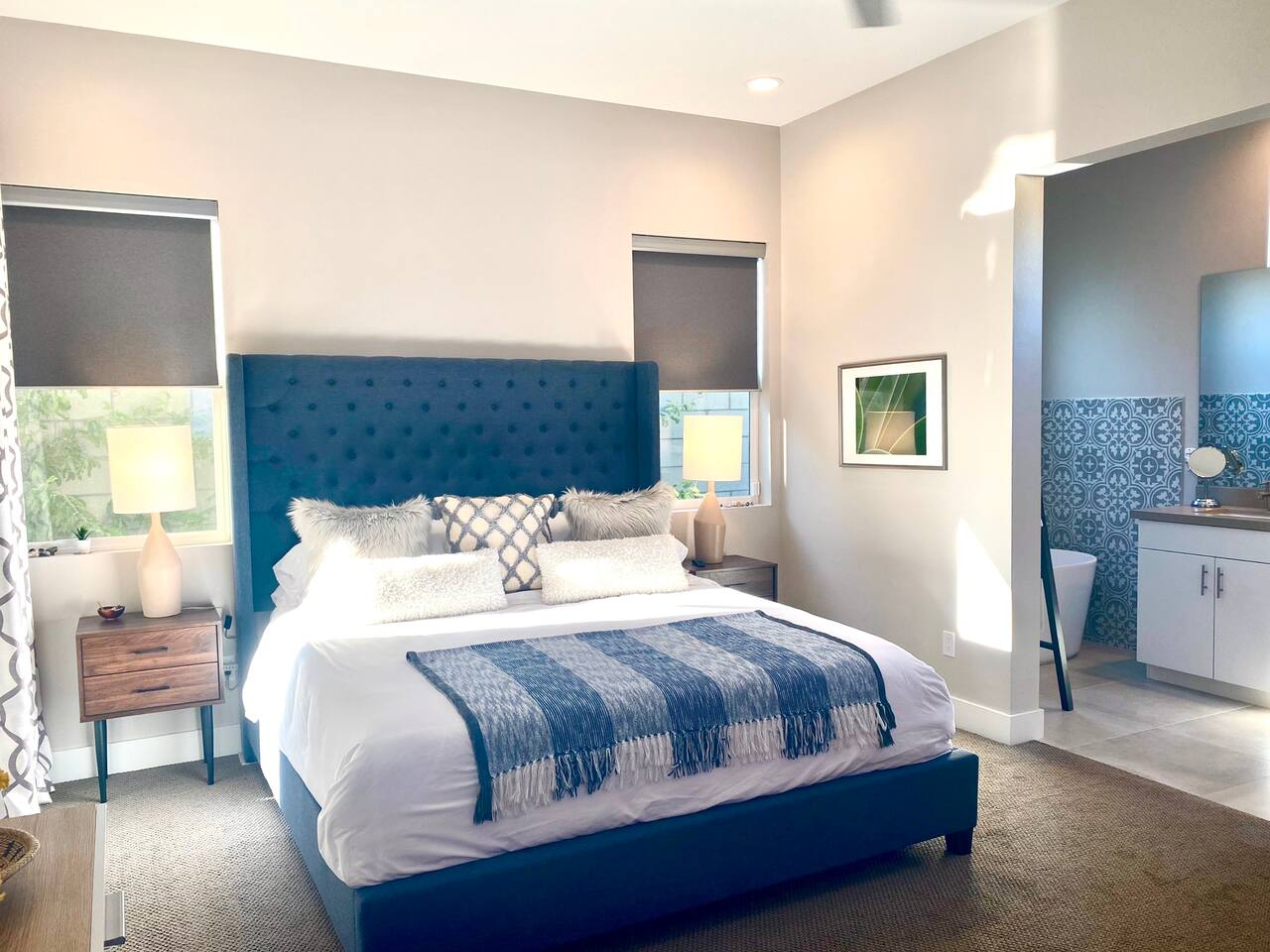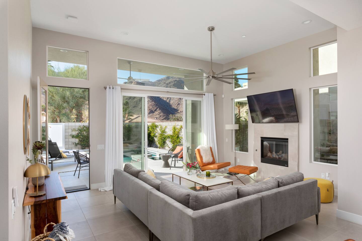Come to La Quinta and have the best stay of your life. In an amazing newly constructed light filled luxury home, that feels like a home! This is the house that when you are driving up looking at the addresses, you hope that this is the house your rented. Well it is! This contemporary luxury 3-bedroom 2 ½ bath pool home lies at the top of La Quinta Cove, where you are steps away from the most amazing hiking and biking trials in Coachella Valley. The mountain views from the jacuzzi are breath taking and in the night sky you can see so many stars that the milky way is actually milky. It has the perfect jacuzzi and heated pool to play in so don’t forget your sunscreen and beach ball! It has a fully equipped kitchen with a cozy island to congregate around while cooking. Quaint comfortable Indoor and outdoor seating areas. Once you are there you will not want to leave! Check out our reviews! It is said that High ceilings increase your creativity and out-of-the-box-thinking. Stay here and let your creative juices flow! #Coachella #Stagecoach #BNPParibasOpen #IndianWellsTennis #IndianWells #PalmSprings