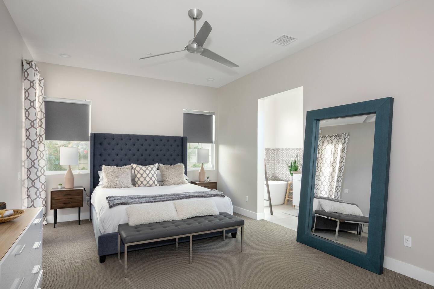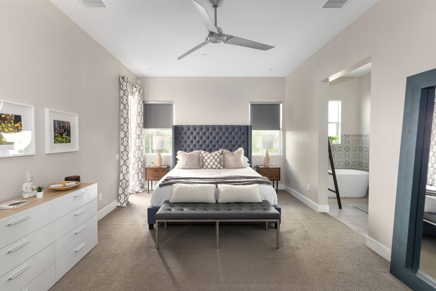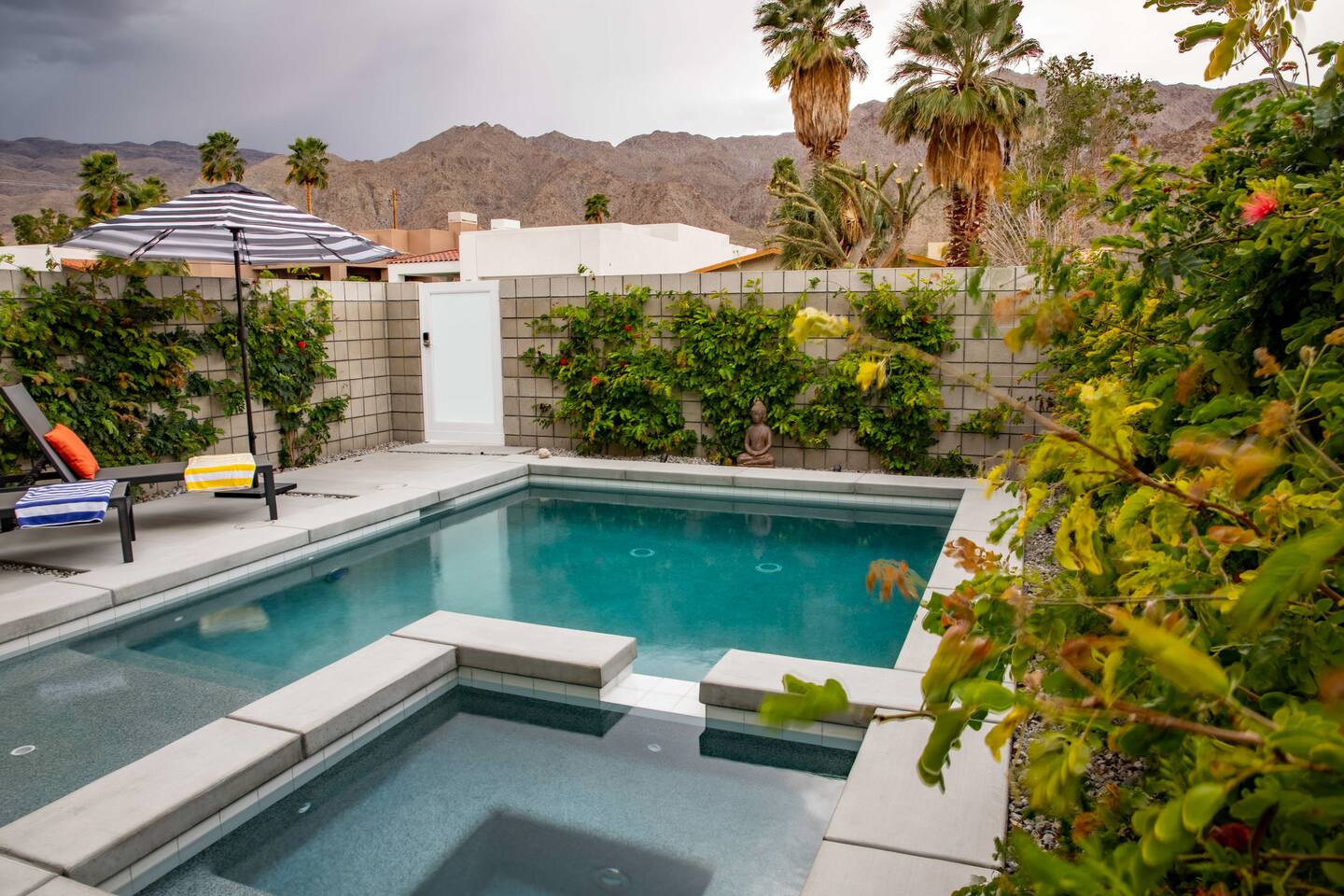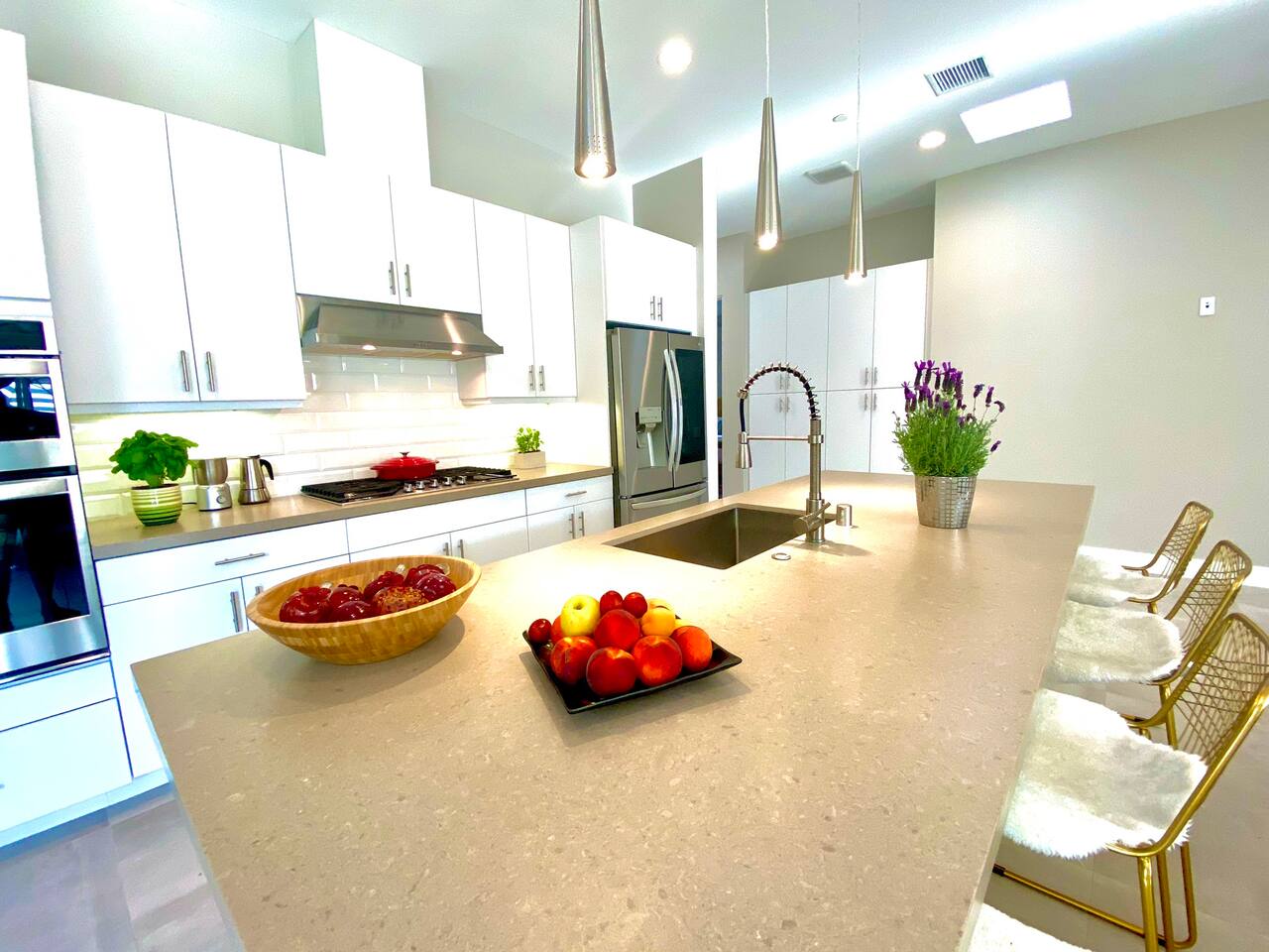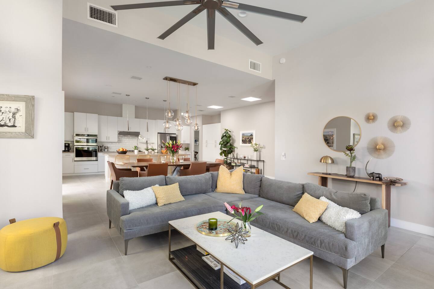Come to La Quinta and have the best stay of your life. In an amazing newly constructed light filled luxury home, that feels like a home! This is the house that when you are driving up looking at the addresses, you hope that this is the house your rented. Well it is! This contemporary luxury 3-bedroom 2 ½ bath pool home lies at the top of La Quinta Cove, where you are steps away from the most amazing hiking and biking trials in Coachella Valley. The mountain views from the jacuzzi are breath taking and in the night sky you can see so many stars that the milky way is actually milky. It has the perfect jacuzzi and heated pool to play in so don’t forget your sunscreen and beach ball! It has a fully equipped kitchen with a cozy island to congregate around while cooking. Quaint comfortable Indoor and outdoor seating areas. Once you are there you will not want to leave! Check out our reviews! It is said that High ceilings increase your creativity and out-of-the-box-thinking. Stay here and let your creative juices flow! #Coachella #Stagecoach #BNPParibasOpen #IndianWellsTennis #IndianWells #PalmSprings