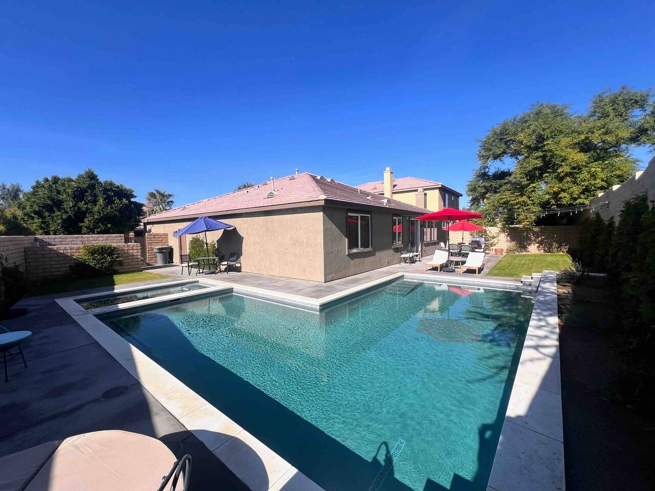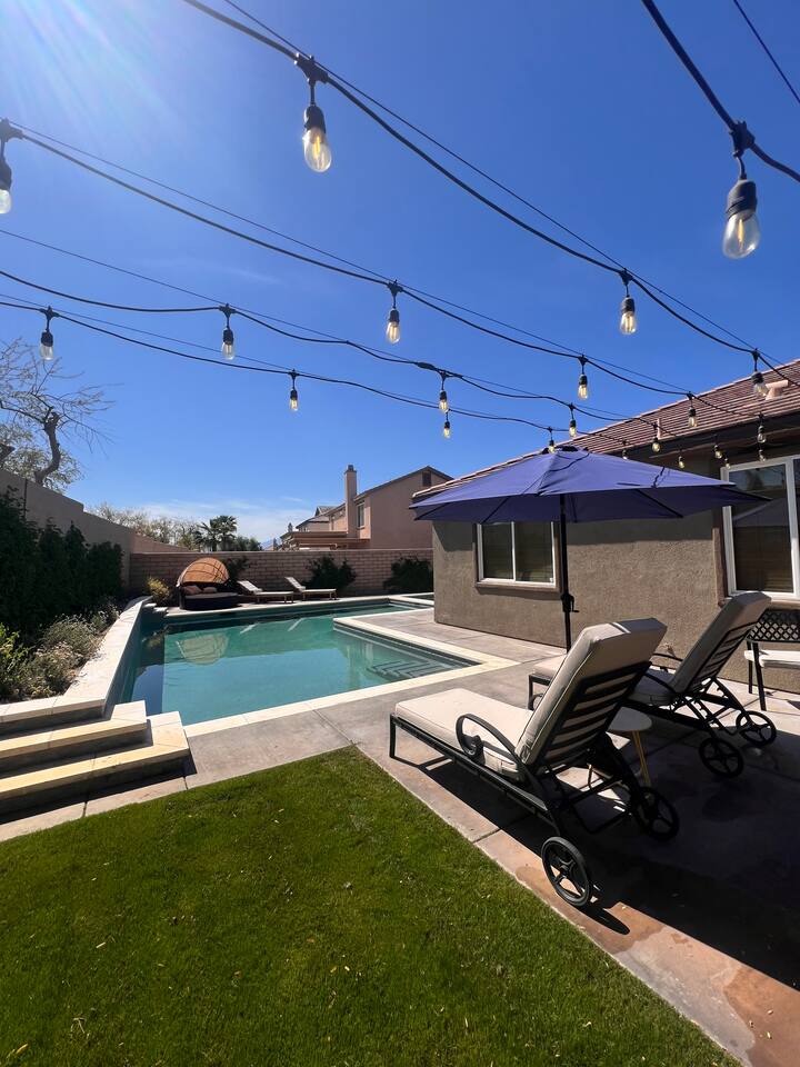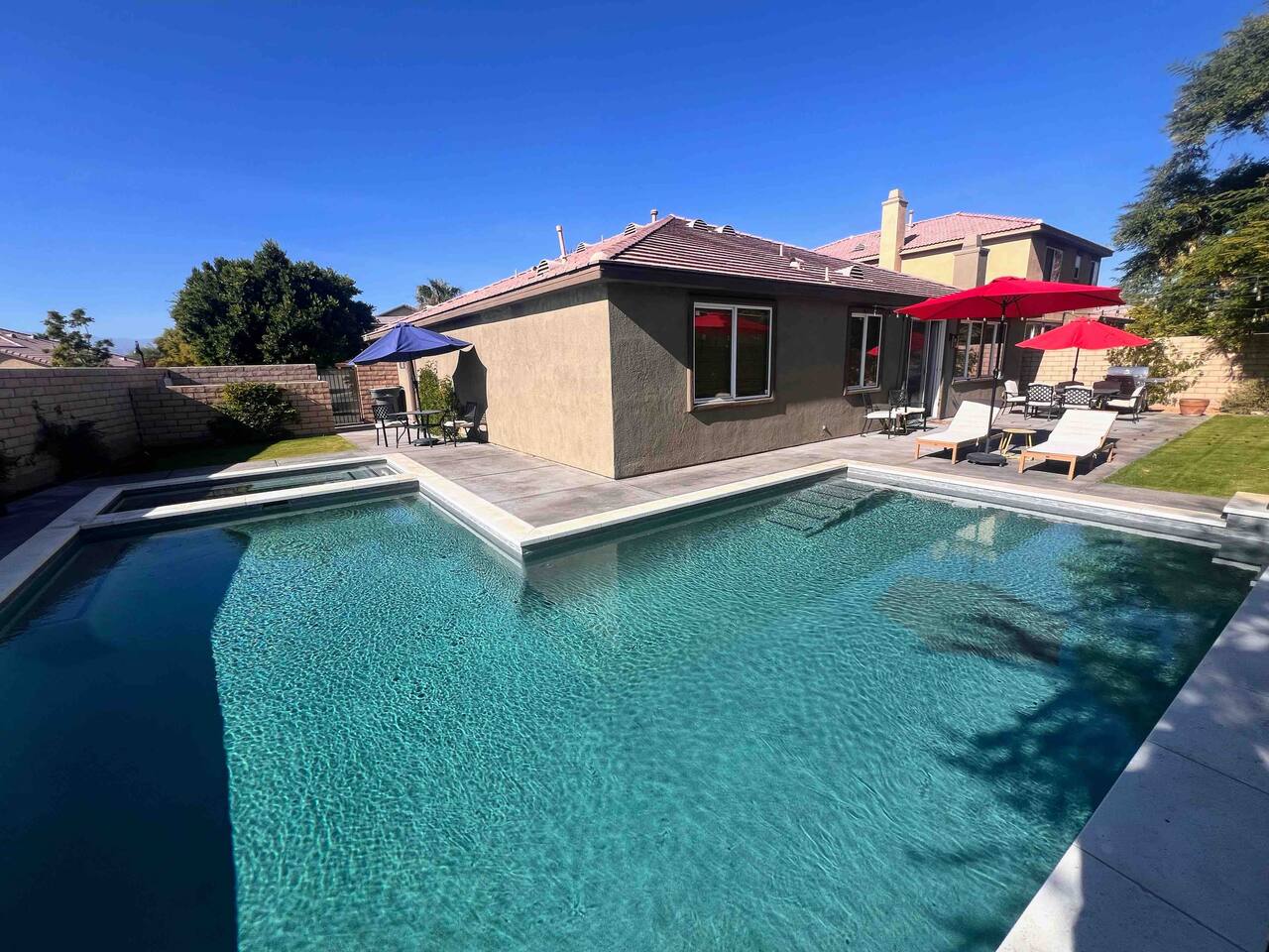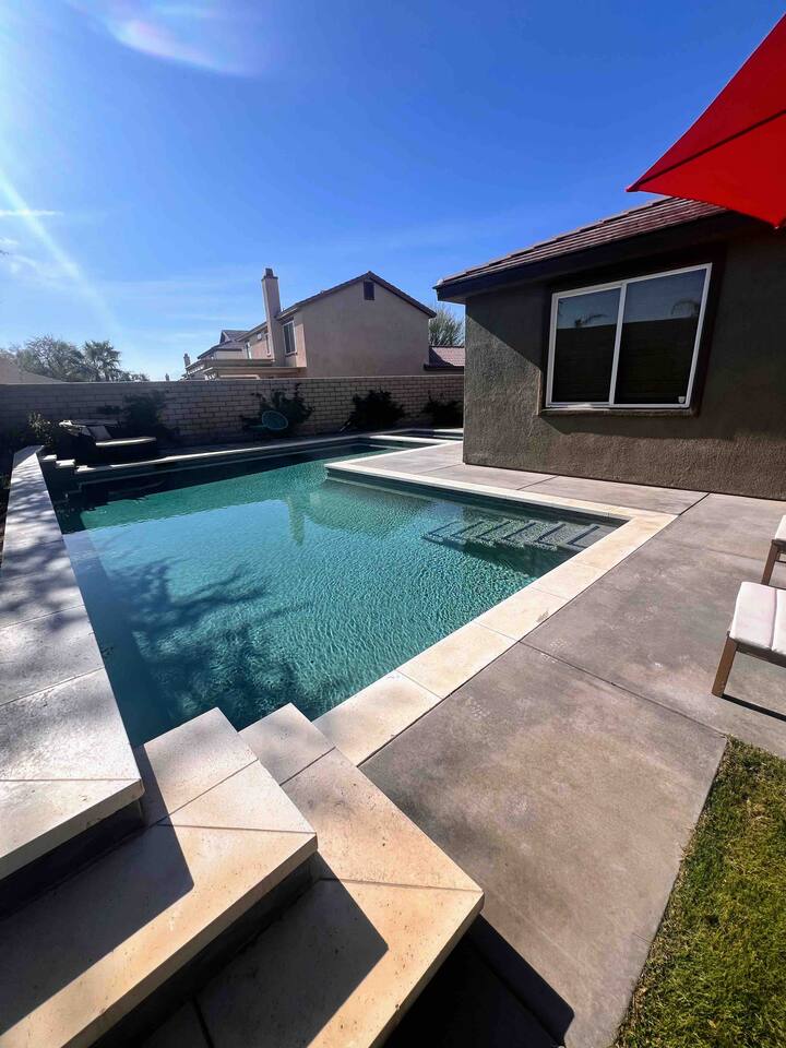 Bring the whole family to this beautiful home located in the gated Terra Lago community, offering plenty of space for fun, relaxation, and memorable moments. This stunning high-ceiling home is thoughtfully furnished with brand-new furniture and modern amenities, creating a comfortable and stylish retreat. Step outside to enjoy the newly designed L-shaped pool and jacuzzi, perfect for relaxing, entertaining, and enjoying the desert sunshine.