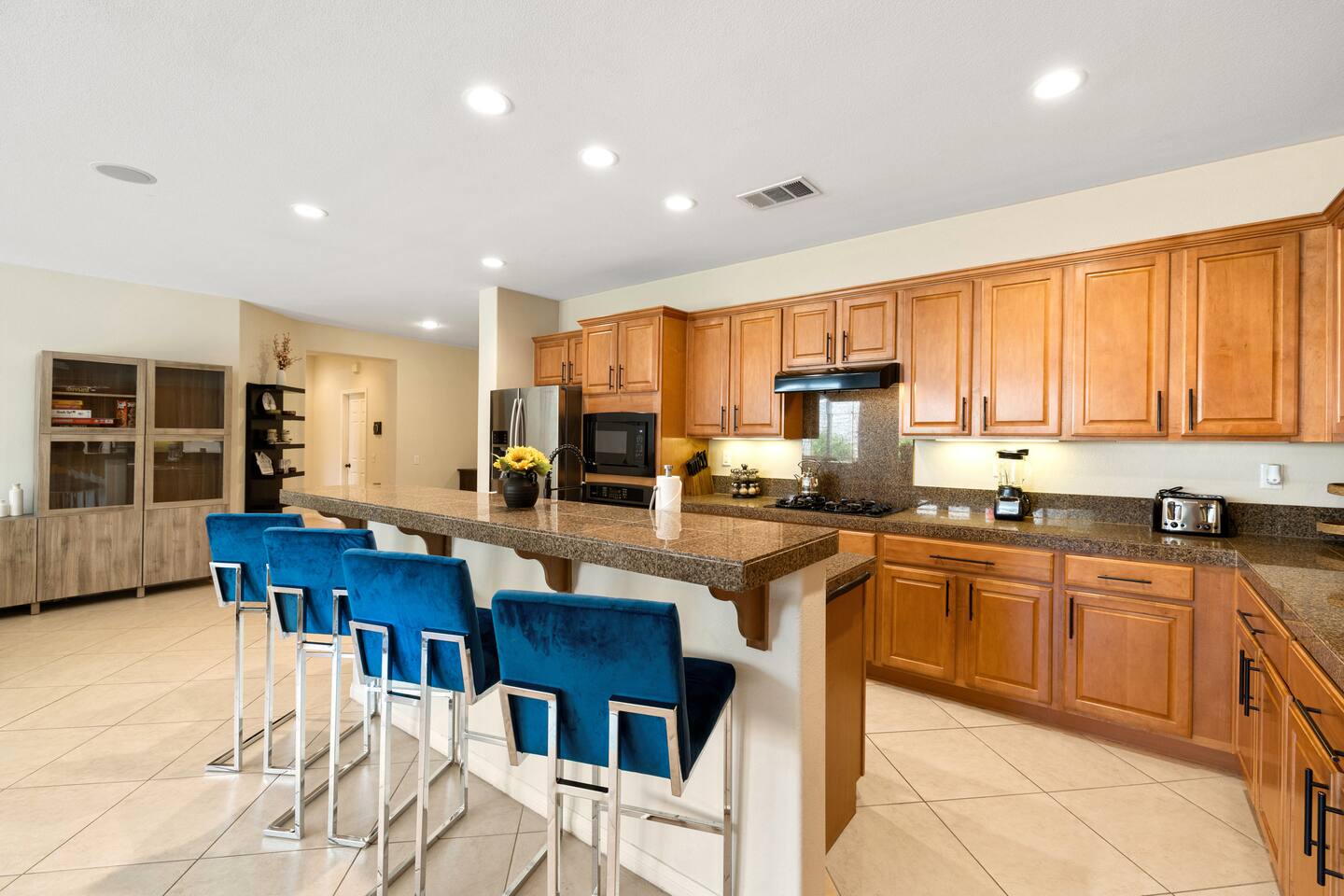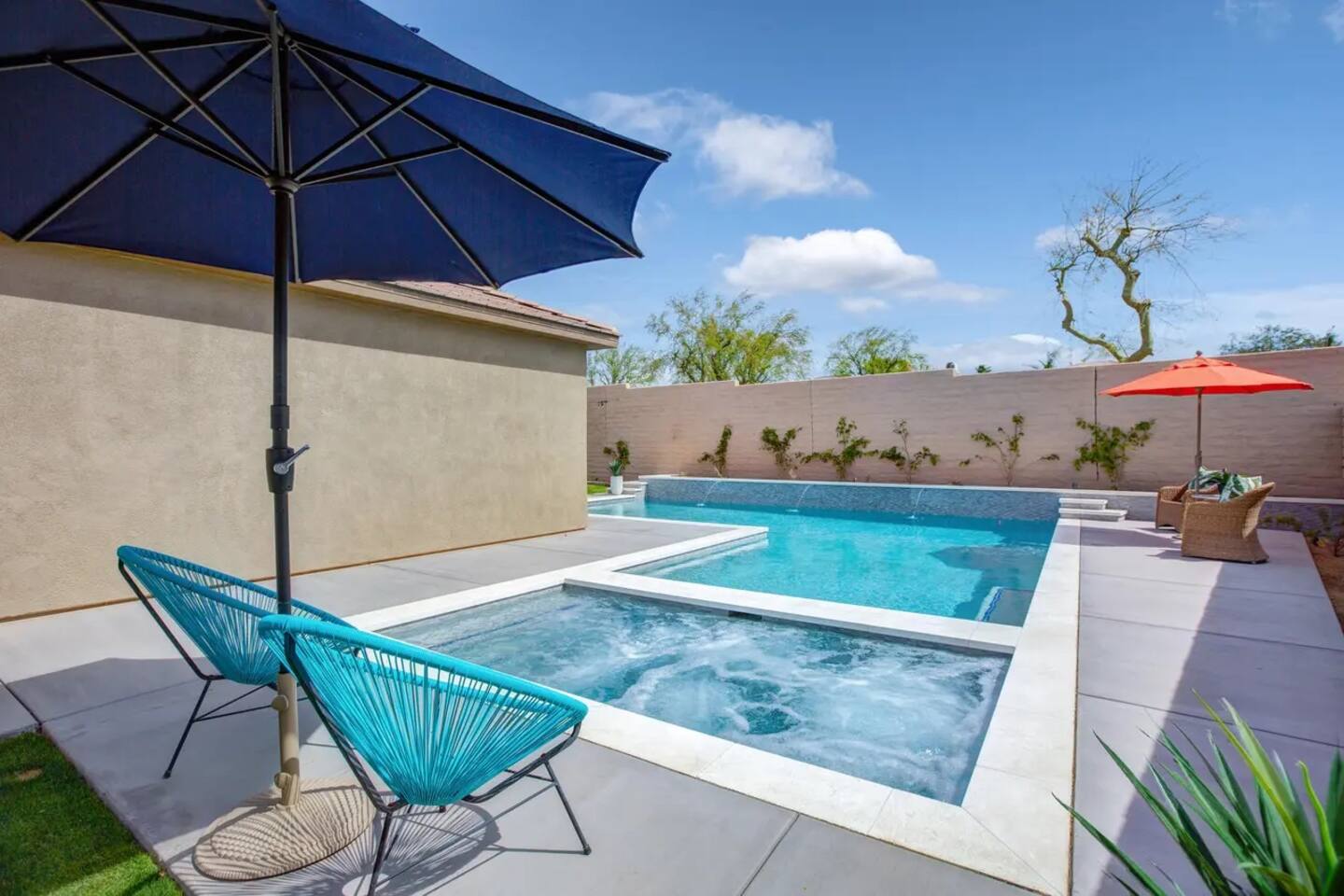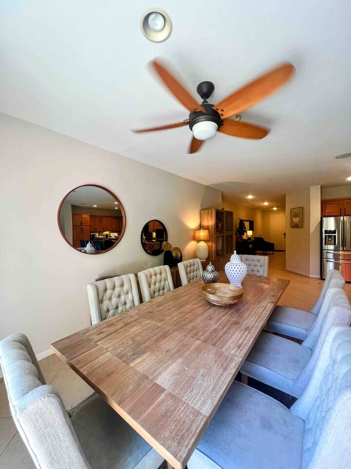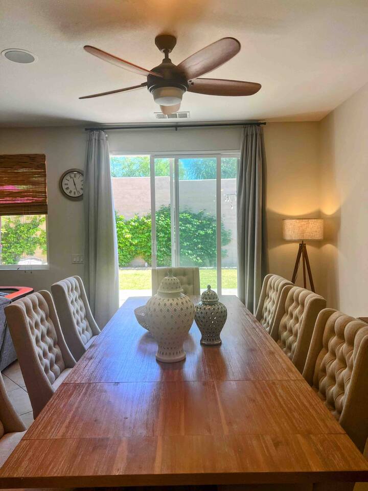 Bring the whole family to this beautiful home located in the gated Terra Lago community, offering plenty of space for fun, relaxation, and memorable moments. This stunning high-ceiling home is thoughtfully furnished with brand-new furniture and modern amenities, creating a comfortable and stylish retreat. Step outside to enjoy the newly designed L-shaped pool and jacuzzi, perfect for relaxing, entertaining, and enjoying the desert sunshine.