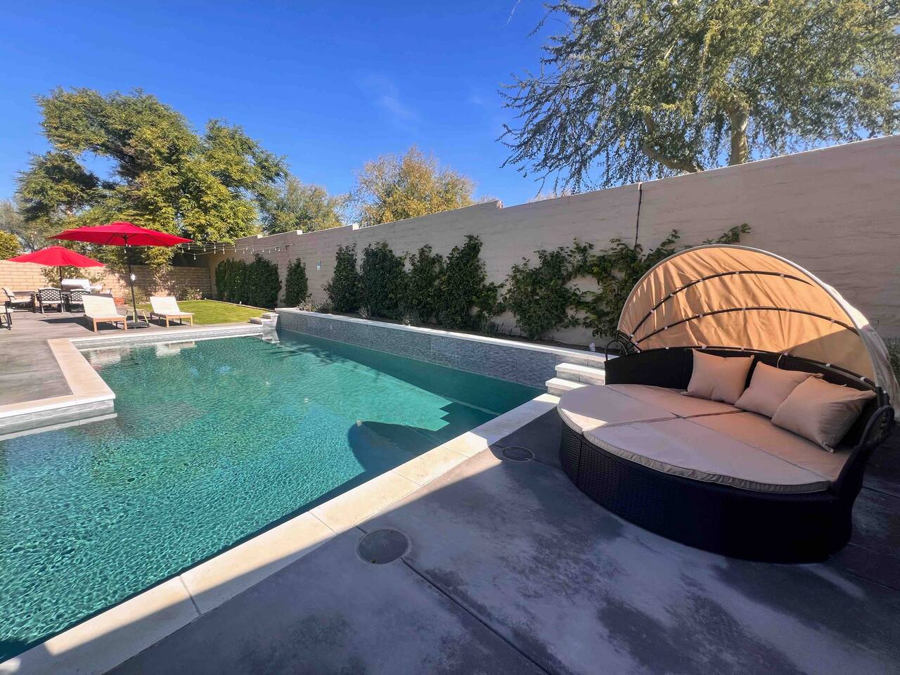 Pool & Spa Enjoy the private pool and spa during your stay. For added comfort, heating can be arranged prior to arrival. Heating Rates: • Pool & Spa Heating: $150 + tax per day • Spa-Only Heating: $35 + tax per day Heating is optional and not included in the nightly rate. The heater can heat either the pool or the spa, but not both simultaneously. Heating requests must be made prior to arrival so the system can be prepared for your stay. Heating performance may vary depending on outdoor temperatures.